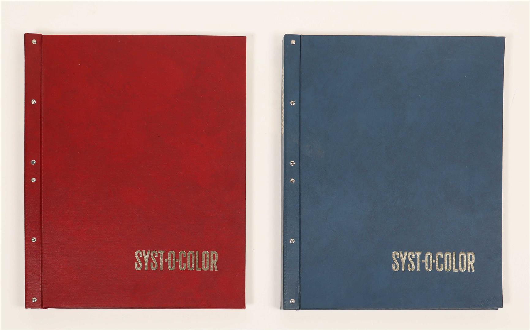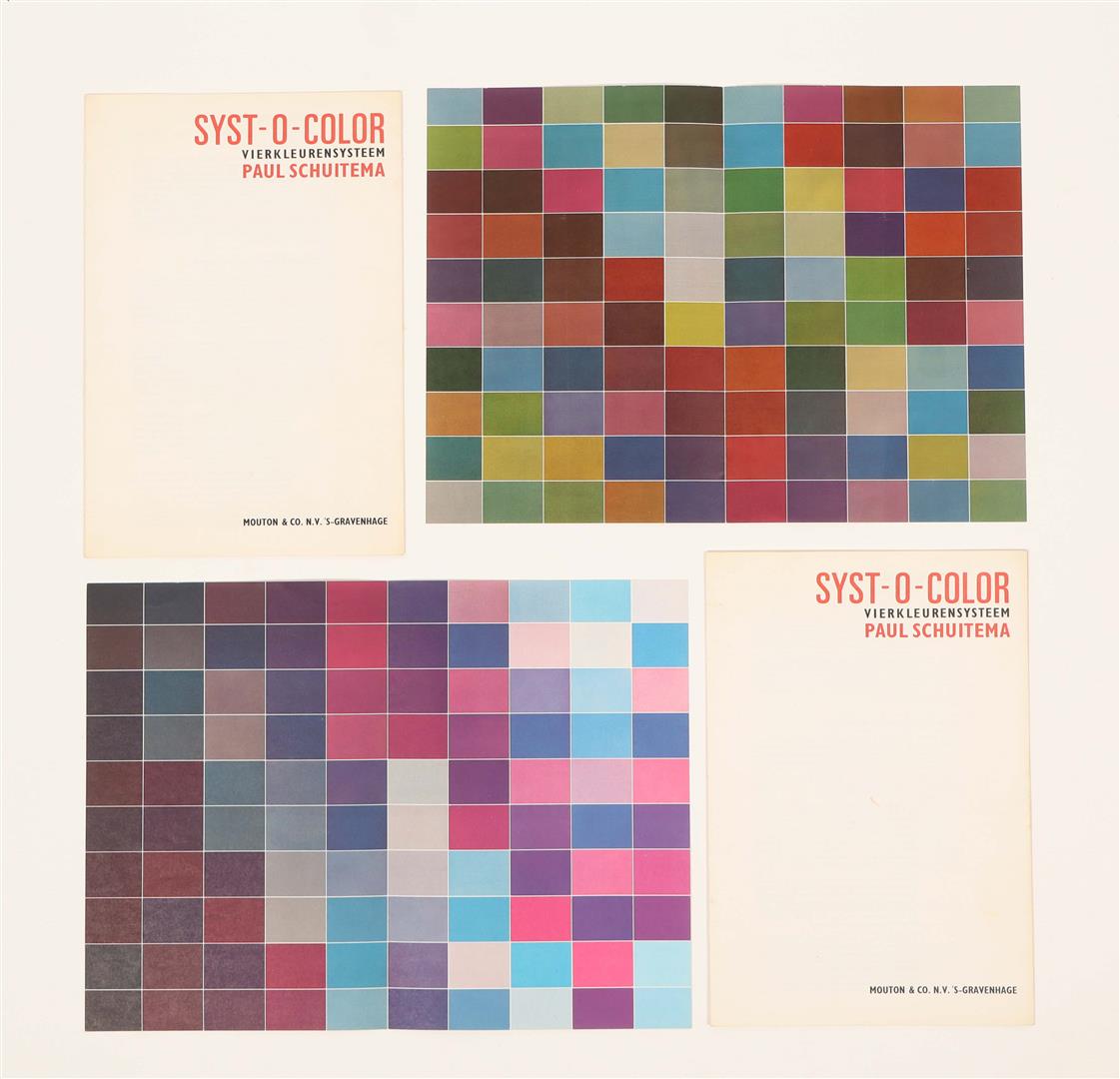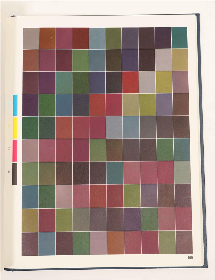 Vier-kleurensysteem. Mouton & Co, The Hague, 1965. 2 vols., Imitation leather in blind cardboard cassettes. Both w. instruction booklets. Folio. Fine set. Rare.
