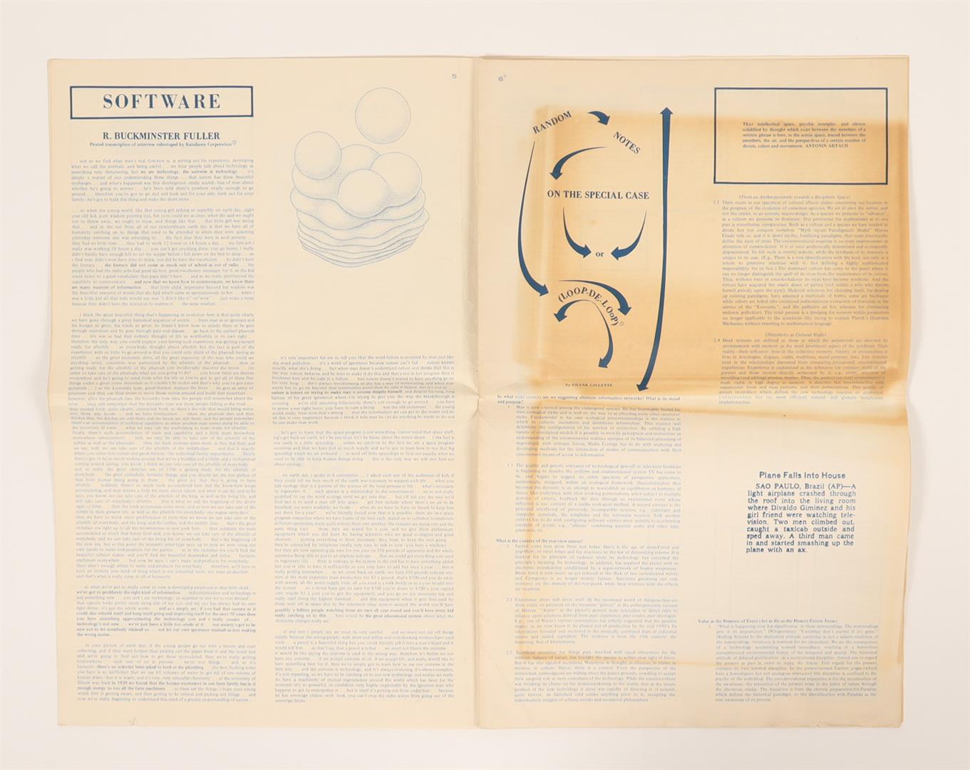 Two issues from the alternative video art magazine featuring important writings on cybernetics and mass media, founded by Beryl Korot, Phyllis Gershuny and Ira Schneider. Published by Raindance Corporation New York. 11 issues, all published between 1970-1973. Both issues with stunning original cover illustrations by Ant Farm.