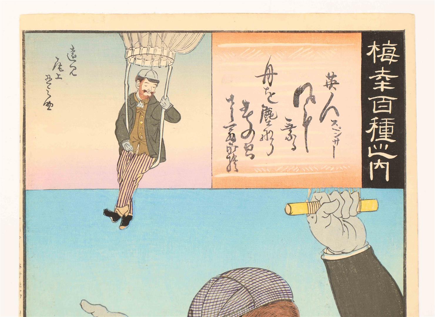 Kunichika (1835-1900). Riding the Famous Hot-Air Balloon