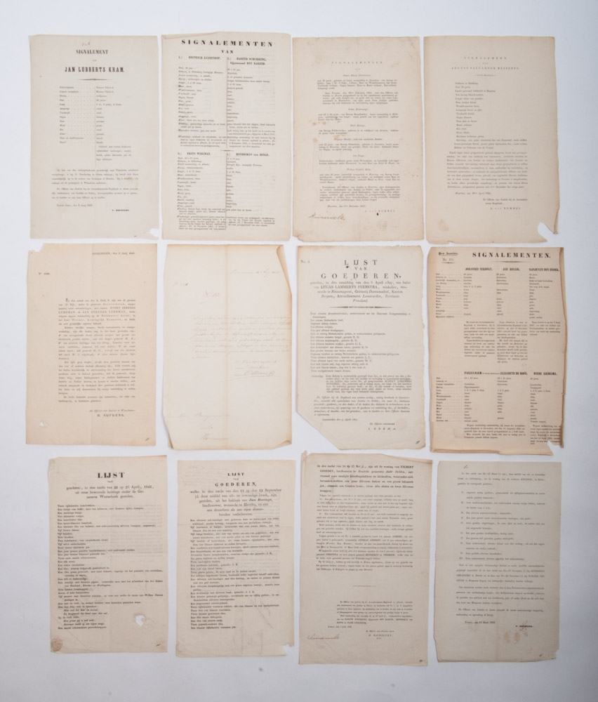 Fascinating lot, with (among others) court reports, search warrants, lists of stolen goods and a "Ernstige en waarschuwende overdenking".