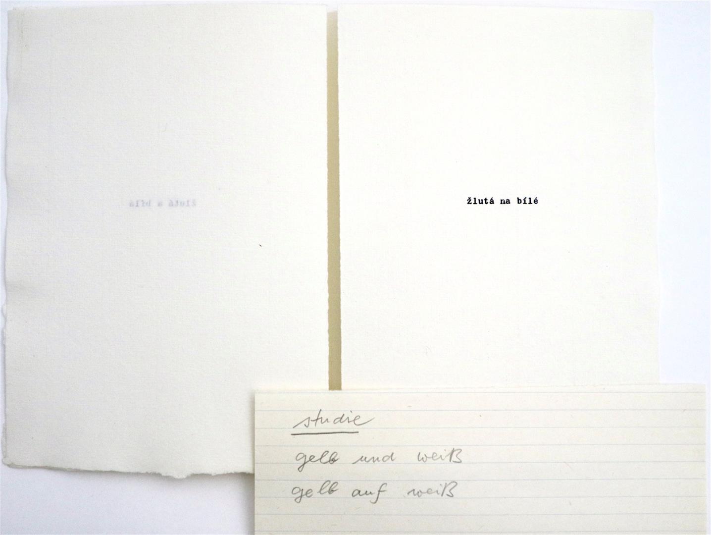 (1) White and Yellow; Yellow and White. (2) Yellow and White; Yellow on White. (3) Stone; Cloud; Tree. (4) Stone/Path; Path/Stone. (5) Wait (sg.); Wait (pl.). (6) Trembling/Fluid; Fluid; Fluid/Variable. (7) Silence; Silence/Wait. (8) Studie Metafory (Study of a metaphor). Rhythm of the rain; Rain of Rhythm. Beautiful set in excellent condition, from the collection of Guy Schraenen. (total 8)