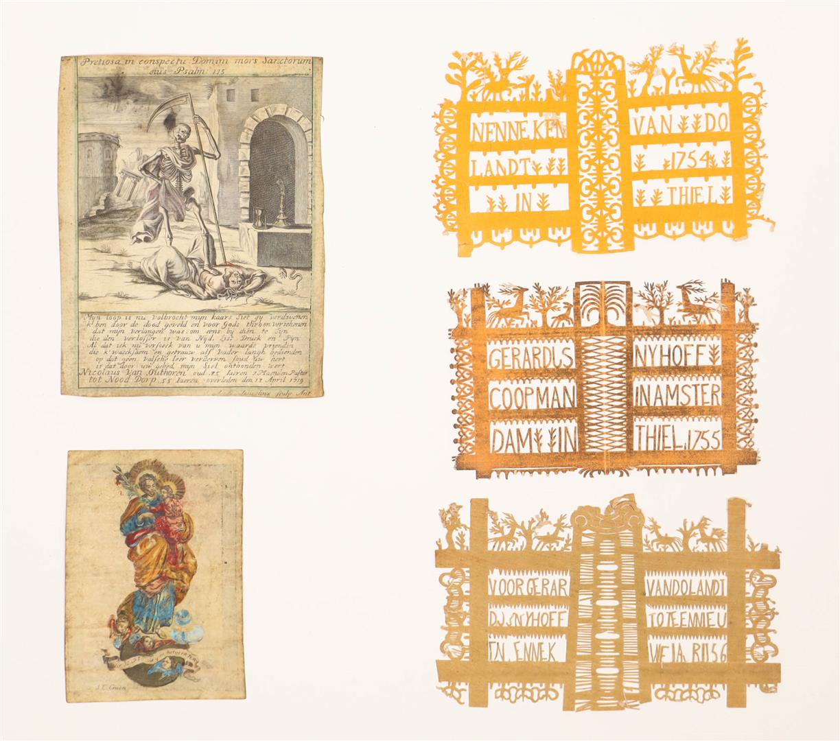 Various arts- and crafts-works inserted, incl. paper cut art and a devotional drawing on vellum. Binding sl. rubbed, a few lvs. w. vague waterstain. Overall in good condition. Oldest publication using Dutch wove paper.