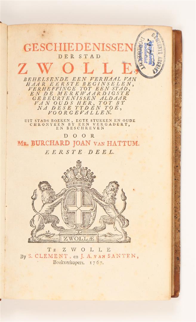 [Zwolle] Hattum, B.J. van. Geschiedenissen der stad Zwolle,