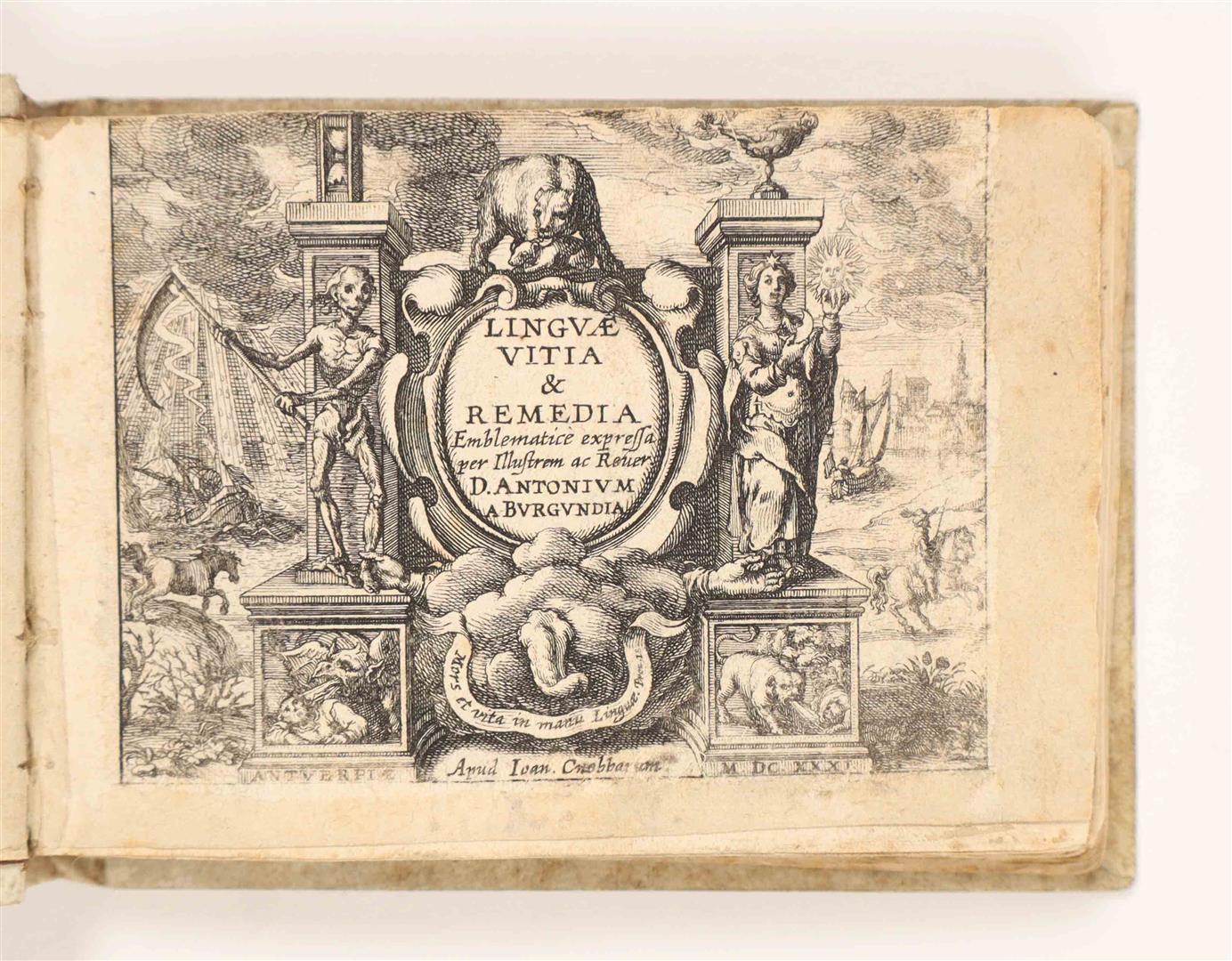 [Emblemata] Bourgogne, Antoine de. Linguae Vitia & Remedia Emblematrice expressa per illustrem ac Reuer