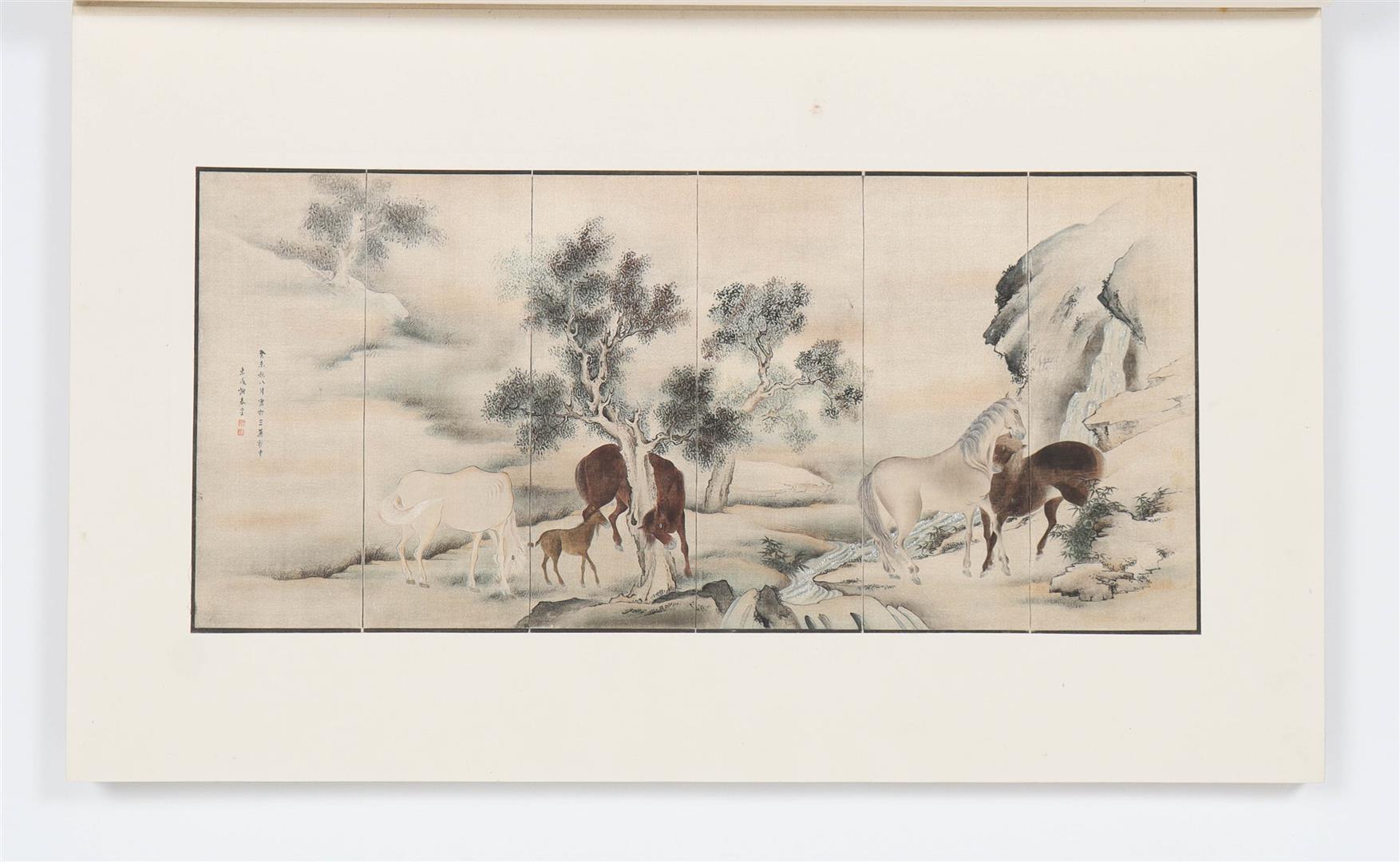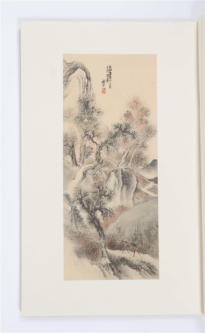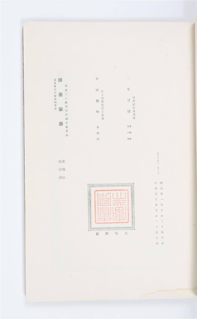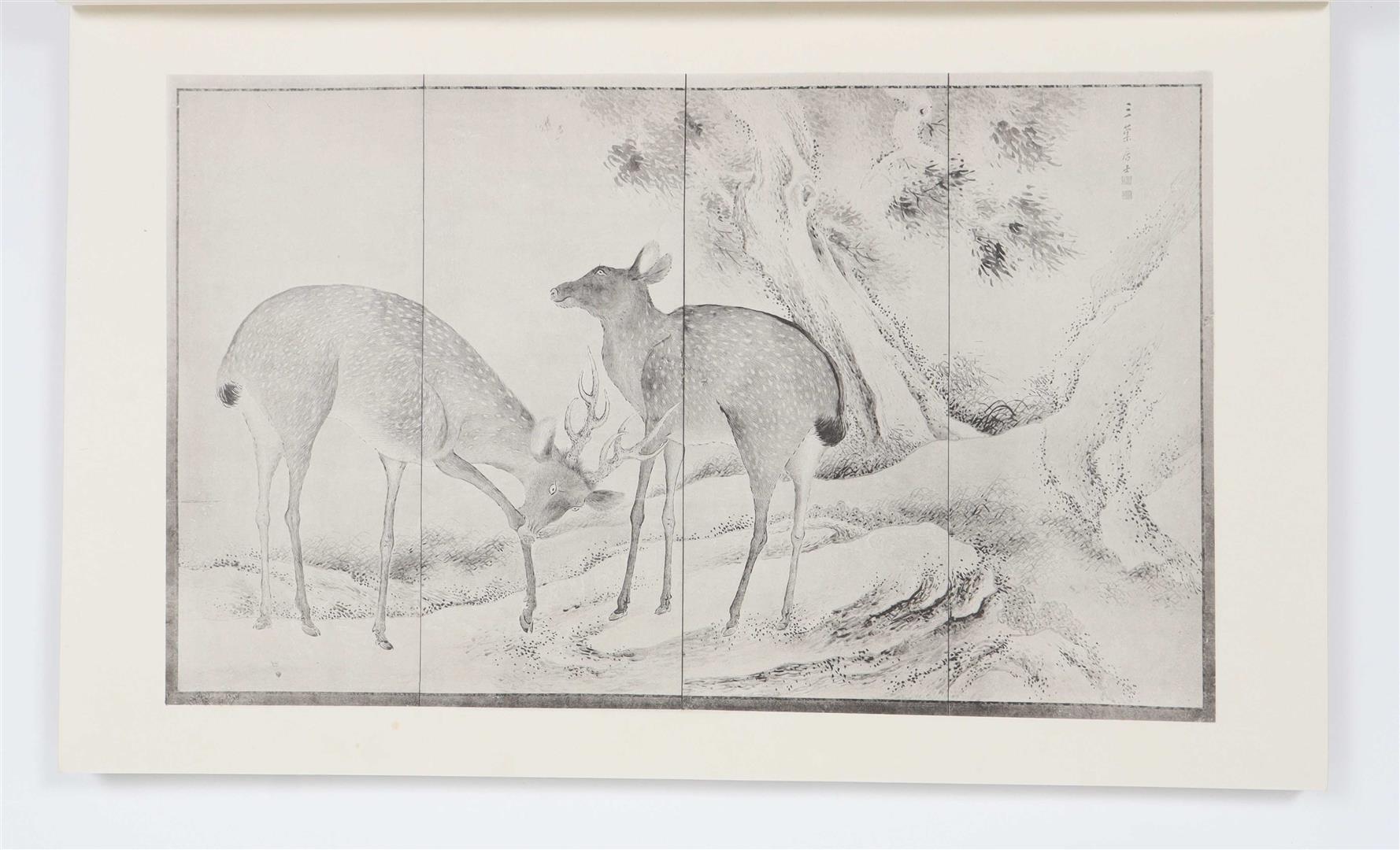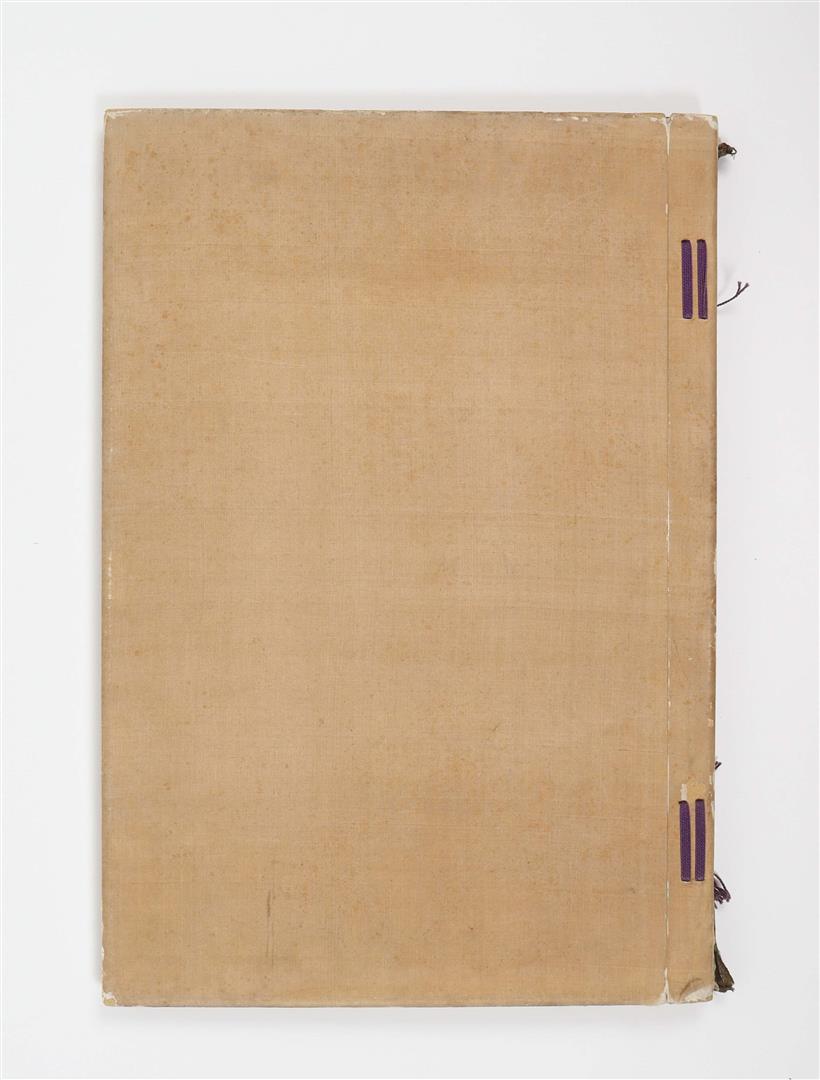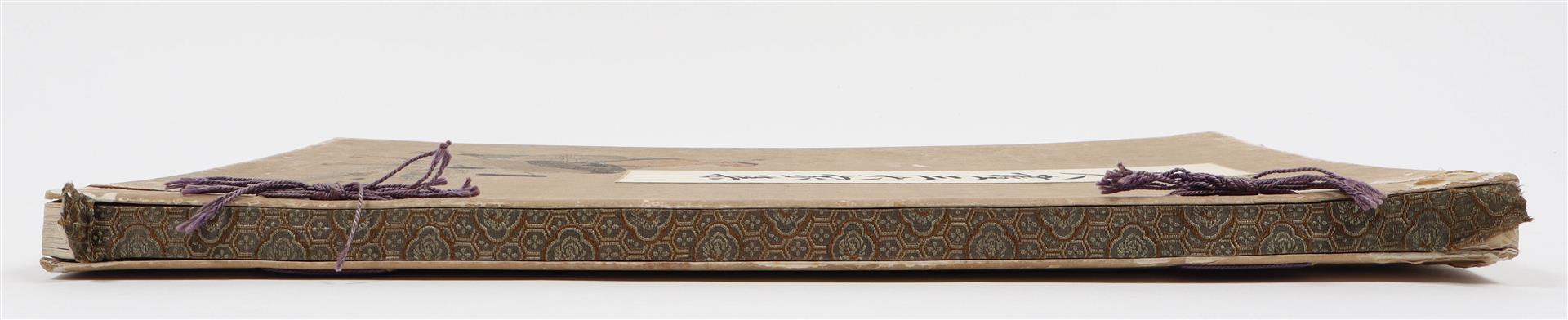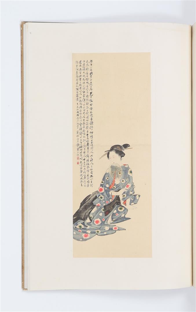 Tokyo, Esthetic Academy, Meiji 42 (= 1909), w. 48 plates (incl. 6 mounted col. plates), interleaved w. text leaves, orig. cord-bound pict. cl. w. mounted title-label on front cover, large folio. Partly waterst. in blank upper margin, spine-ends and edges of covers worn along extremities.