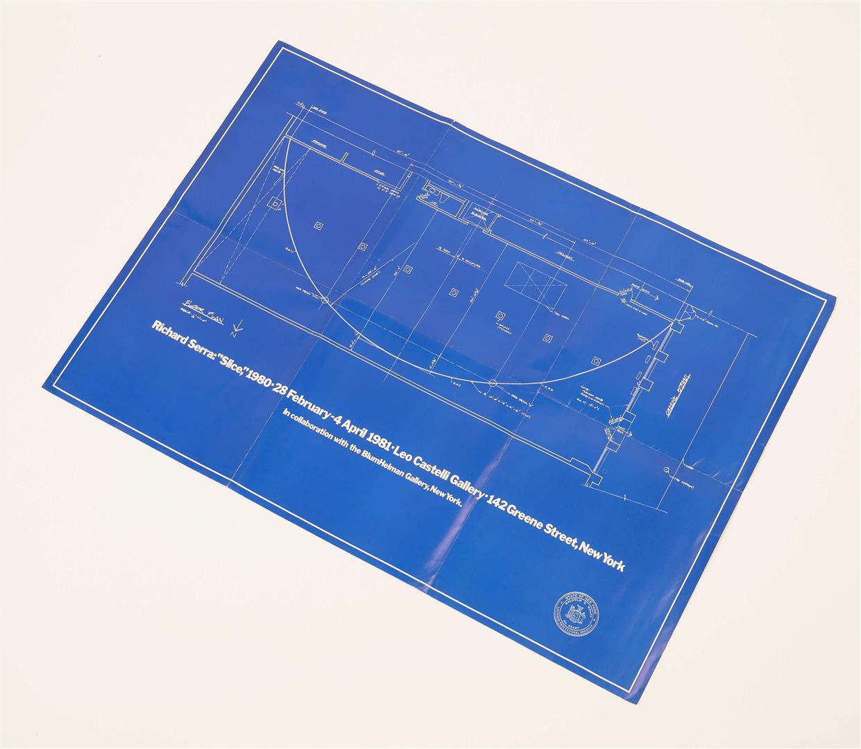 New York, Leo Castelli Gallery, 1981. Single-sided exhibition poster, 46.5 x 65 cm, printed white on blue background.