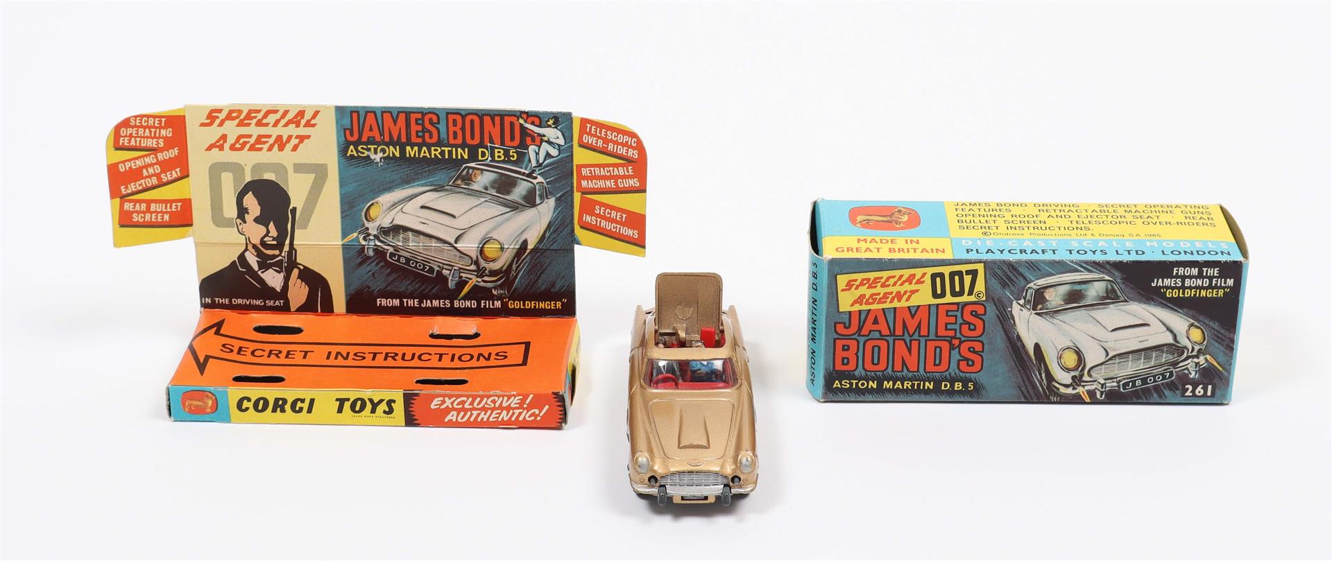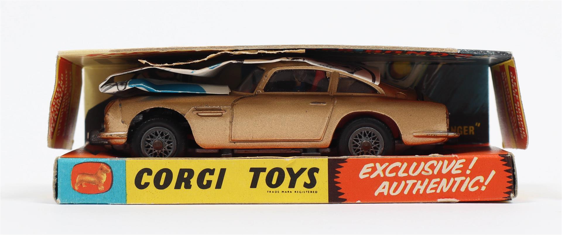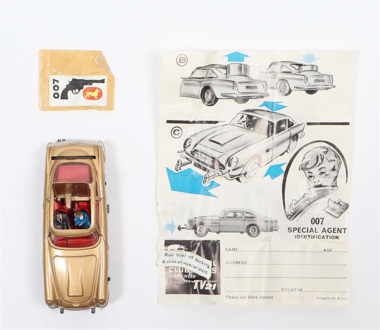 Die-Cast scale model from the film "Goldfinger", 1965. In original box, complete with instructions, sticker 007 and ejection chair figurine. In near mint condition.