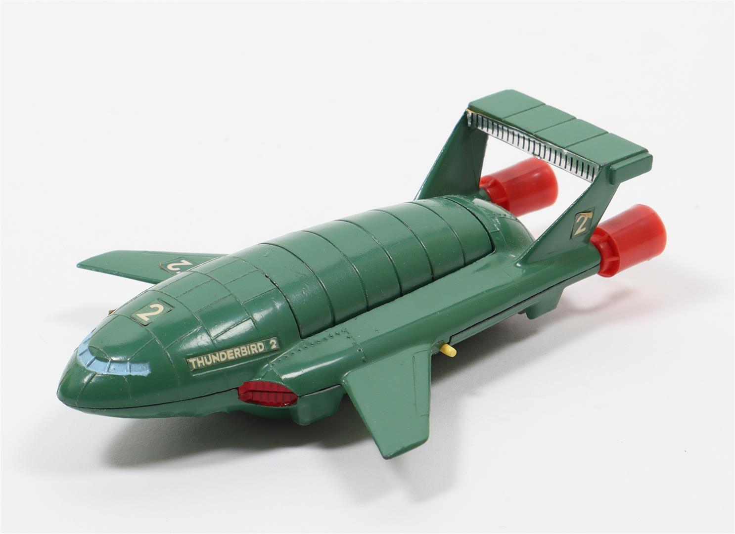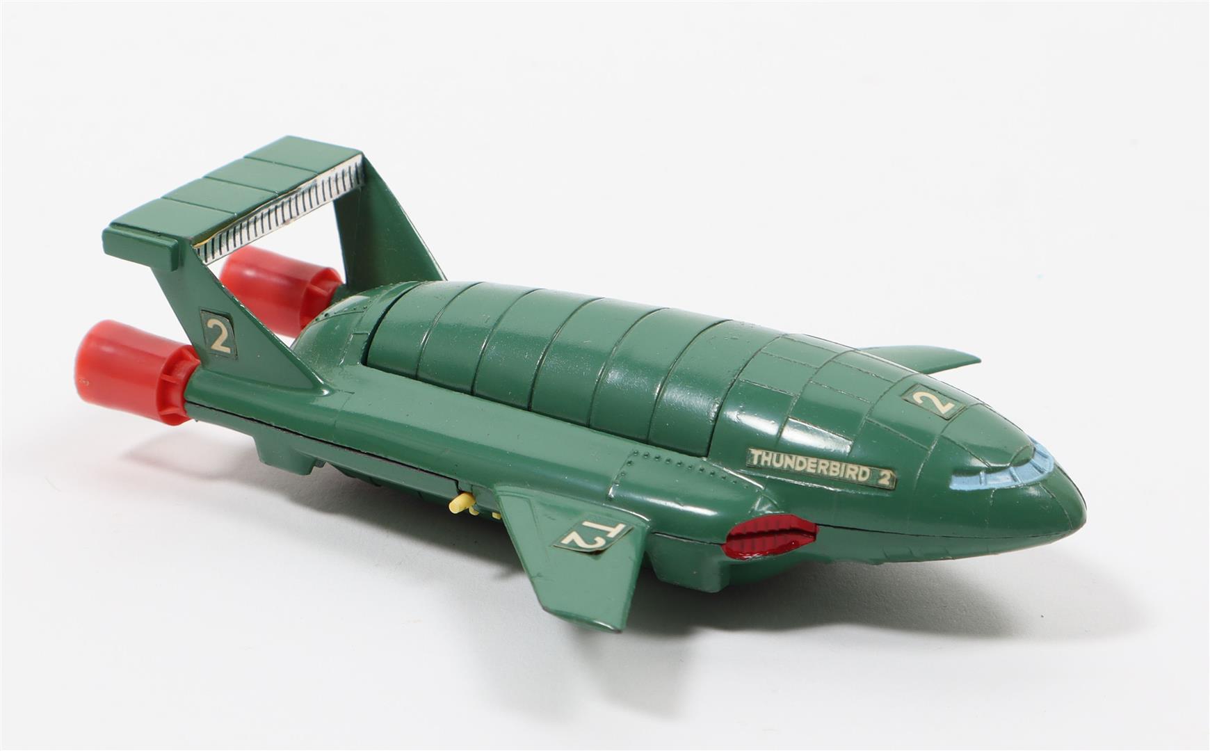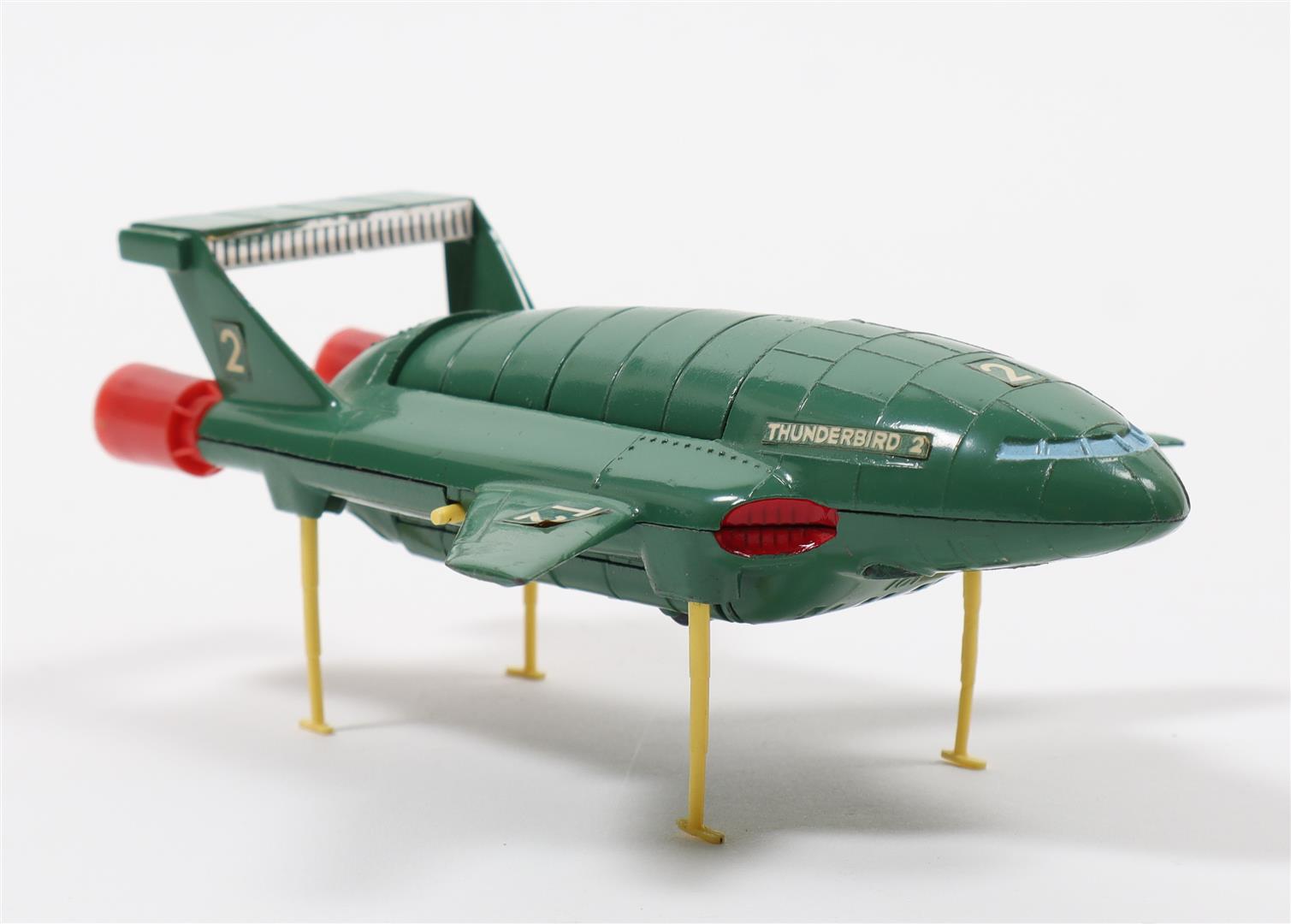 Dinky Toys, ca. 1966. In near mint condition, one lid slightly dam. (removed store sticker and small tear due to opening of the box). Including the all too often missing missiles. With: (2) Thunderbirds 2 & 4. Dinky Toys 101. In original Box. Near mint.