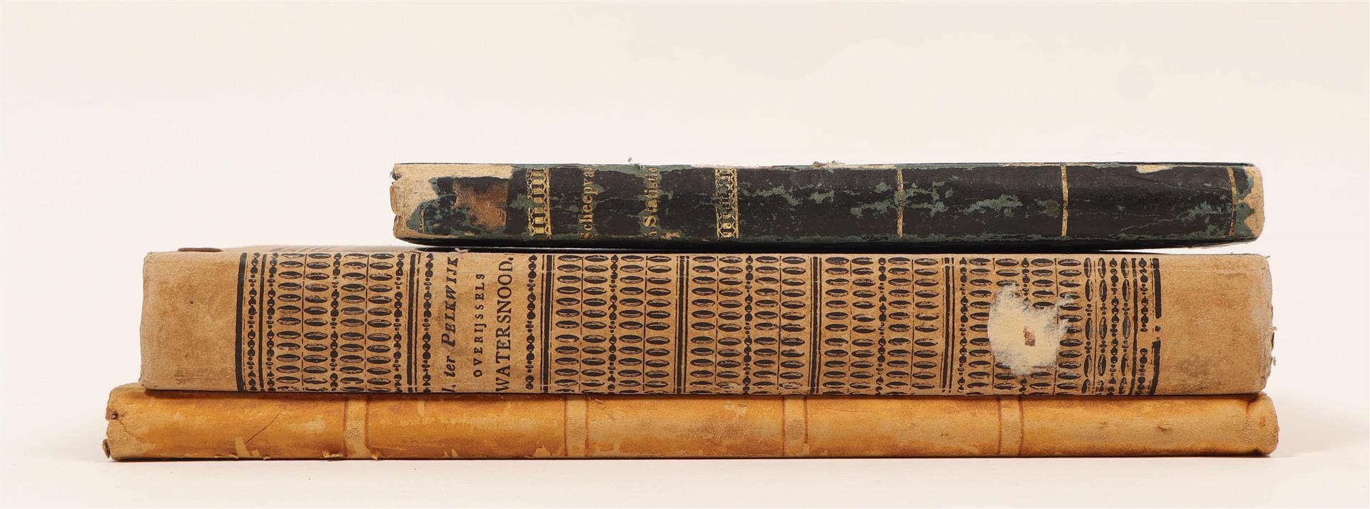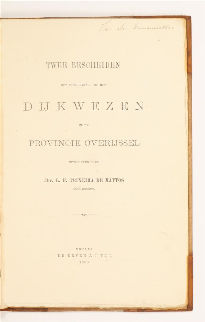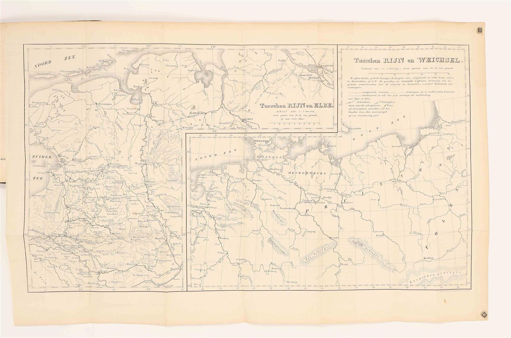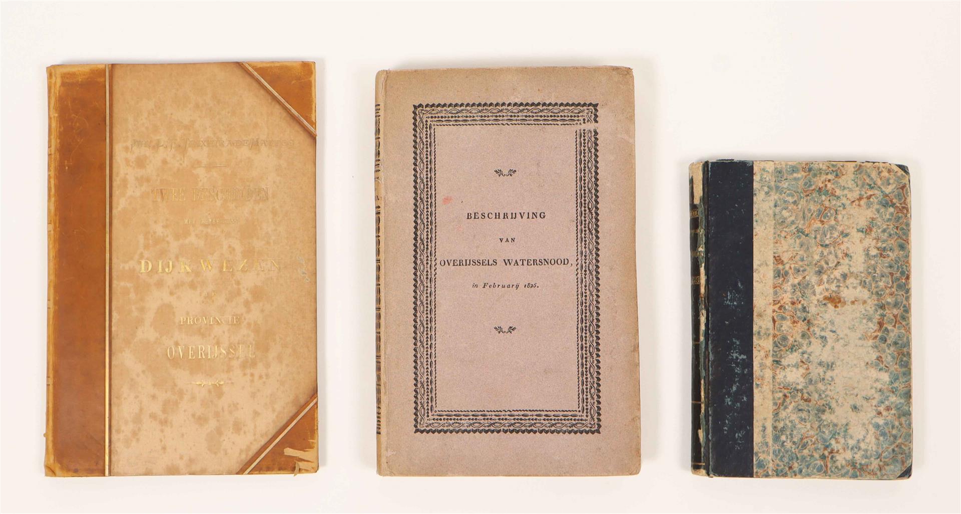 Zwolle, Clement, de Vri en van Stégeren, 1826. (4),28,XVI,283,(5) p., engr. title w. circular view, full p. engraved plate, both by A.L. Zeelander after J. Schoenmaker Doyer, 1 fold. engr. table. Contemp. boards. Binding rubbed, corners bending, hinges sl. splitting, foxing as usual. With (2): Staring, W. and Stieltjes, T.J. De Scheepvaart in Salland en Twenthe. Zwolle, W.E.J. Tjeenk Willink, 1847. 3 parts in 1 vol. 57,(1); 41,(4); (4),80,(4) p. w. 2 large fold. lithogr. plates. Bound with: Staring, W. and Stieltjes, T.J., De Rijn-Wezer-Vaart. Zwolle, W.E.J. Tjeenk Willink, 1850. W. a large fold. lithogr. map. And: Advertisement for the 'Tijdschrift voor staathuishoudkunde en statistiek' and 'Haubner's gezondheidsleer der landhuishoudelijke huisdieren'. And: Staring, W. De Belgische Kampen. Arnhem, G.J. Thieme, 1850. W. 2 large fold. lithogr. plates. Contemp. boards. Small 8vo. Binding sl. worn, otherwise in good condition. - and 1 other.