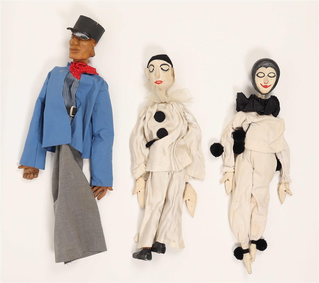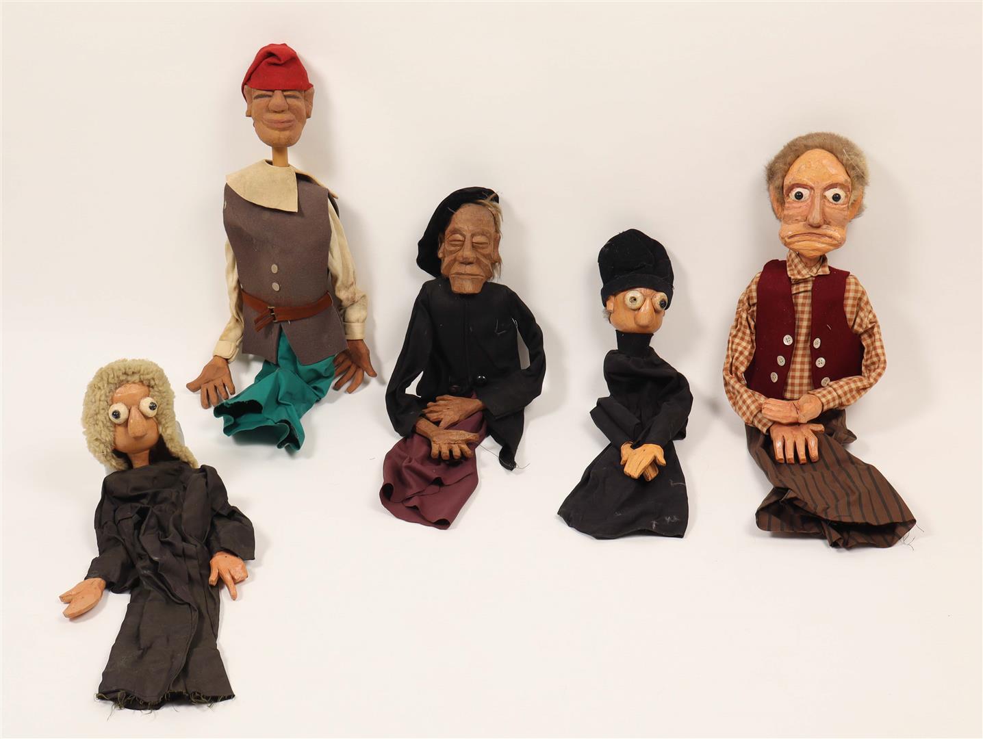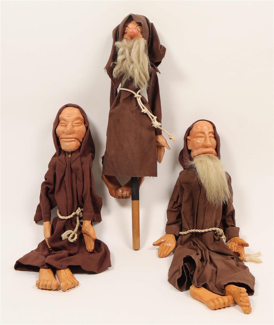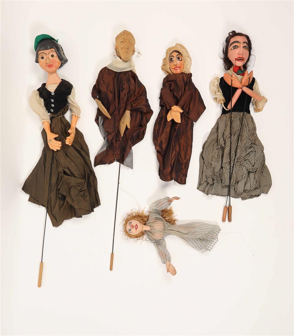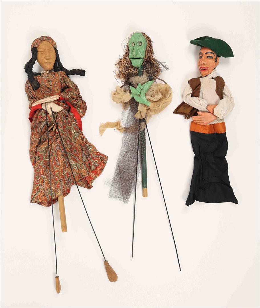 20th cent. Painted wood, height of puppets vary between approx. 30 cm and 50 cm. Incl. Chinese figures, a group of monks and a Mephisto puppet. Incl. w. some spare parts.