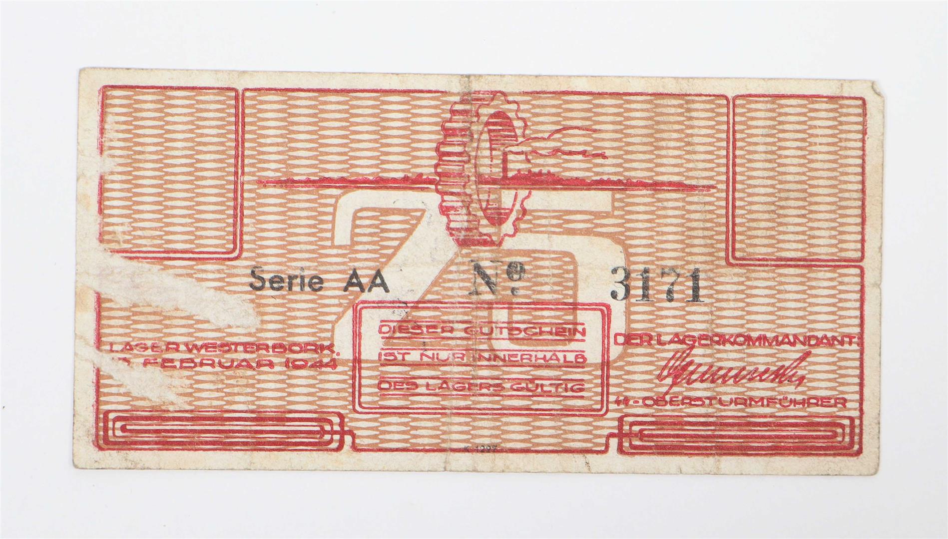 [WW2] Concentration and occupation camp currency: (1) 25 cent Gutschein Lager Westerbork,