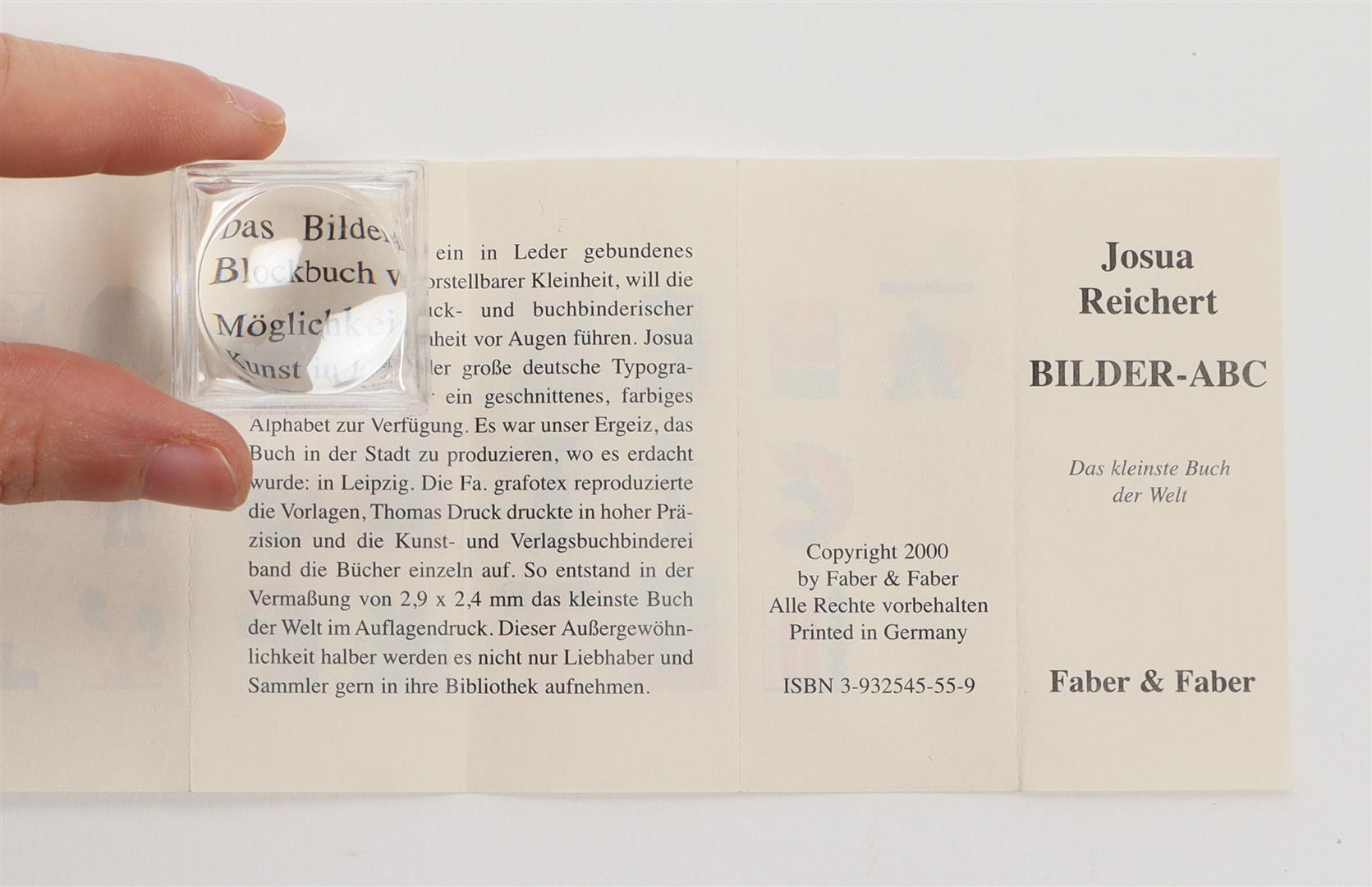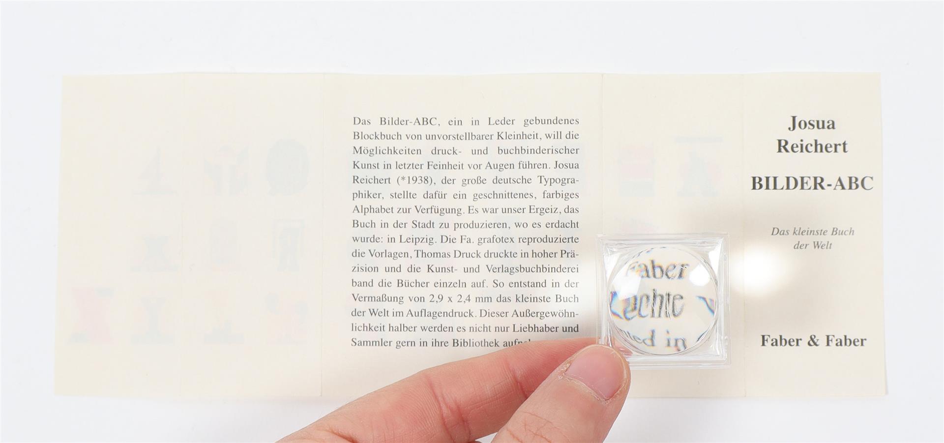 Faber & Faber, 2000. Leather-bound, on Japan silk paper by Kunst-und Verlags-Buchbinderei Leipzich. 2.4 x 2.9 mm. 32 p. Under magnifying glass in fine wood box.