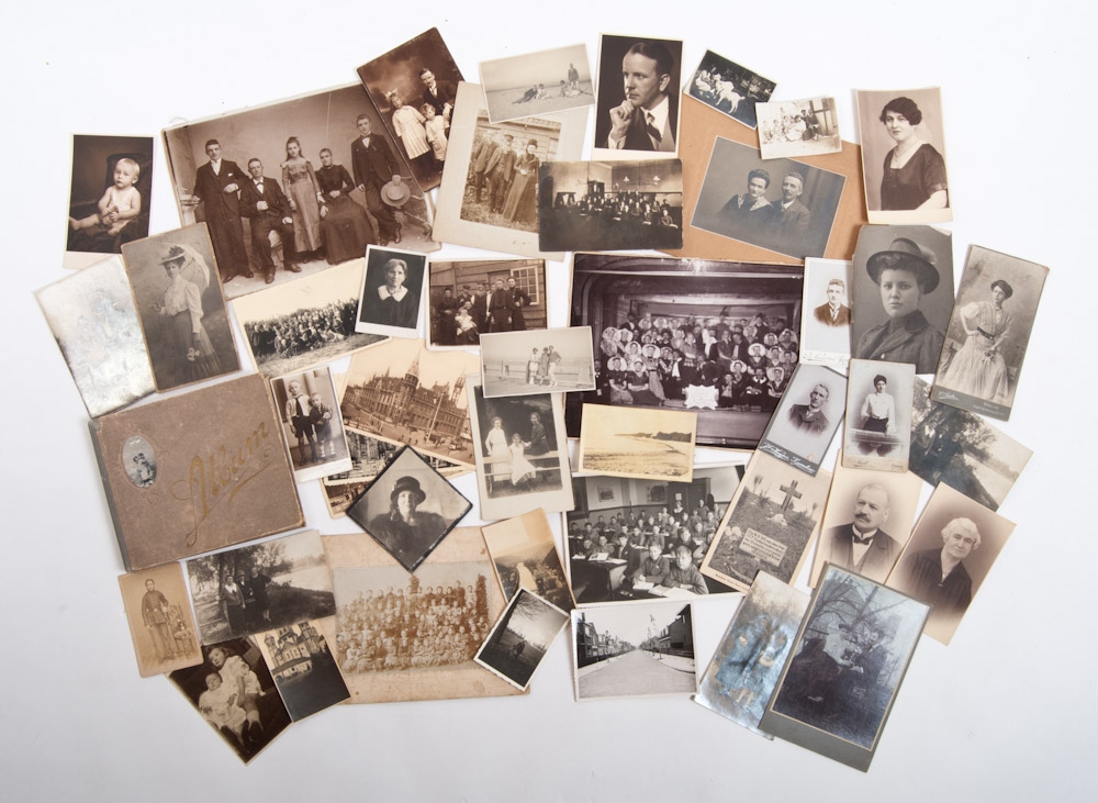Ca. 200 photos, made between 1890 and 1950. Mostly Dutch. Various sizes. - including a Doorlopend Bewijs van Toegang for the second Nederlandsche Jaarbeurs 1918.