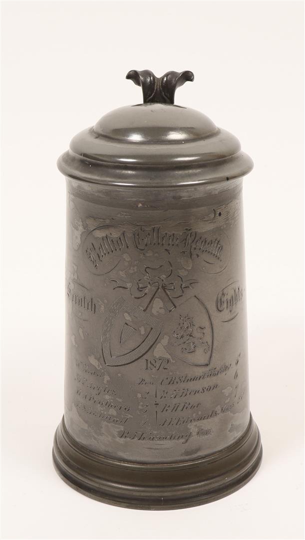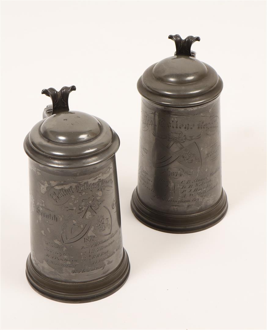 Two pewter rowing tankards, Balliol College (Oxford) 1872 and 1874