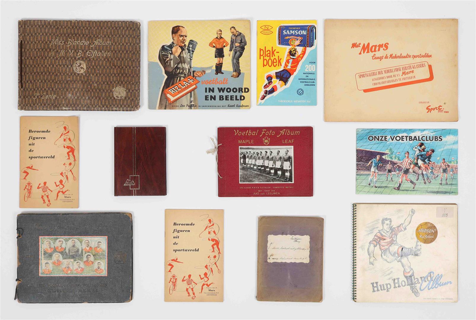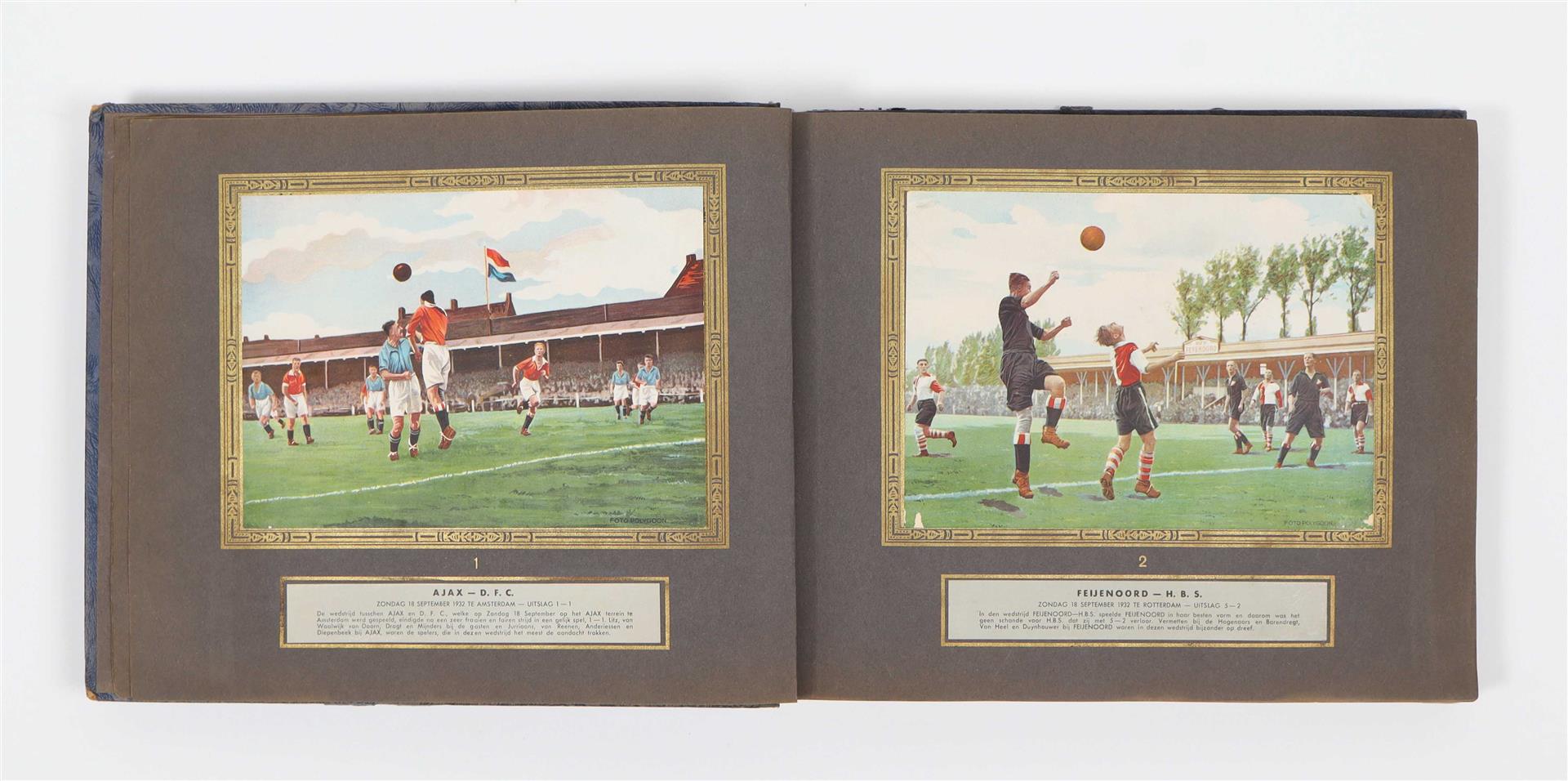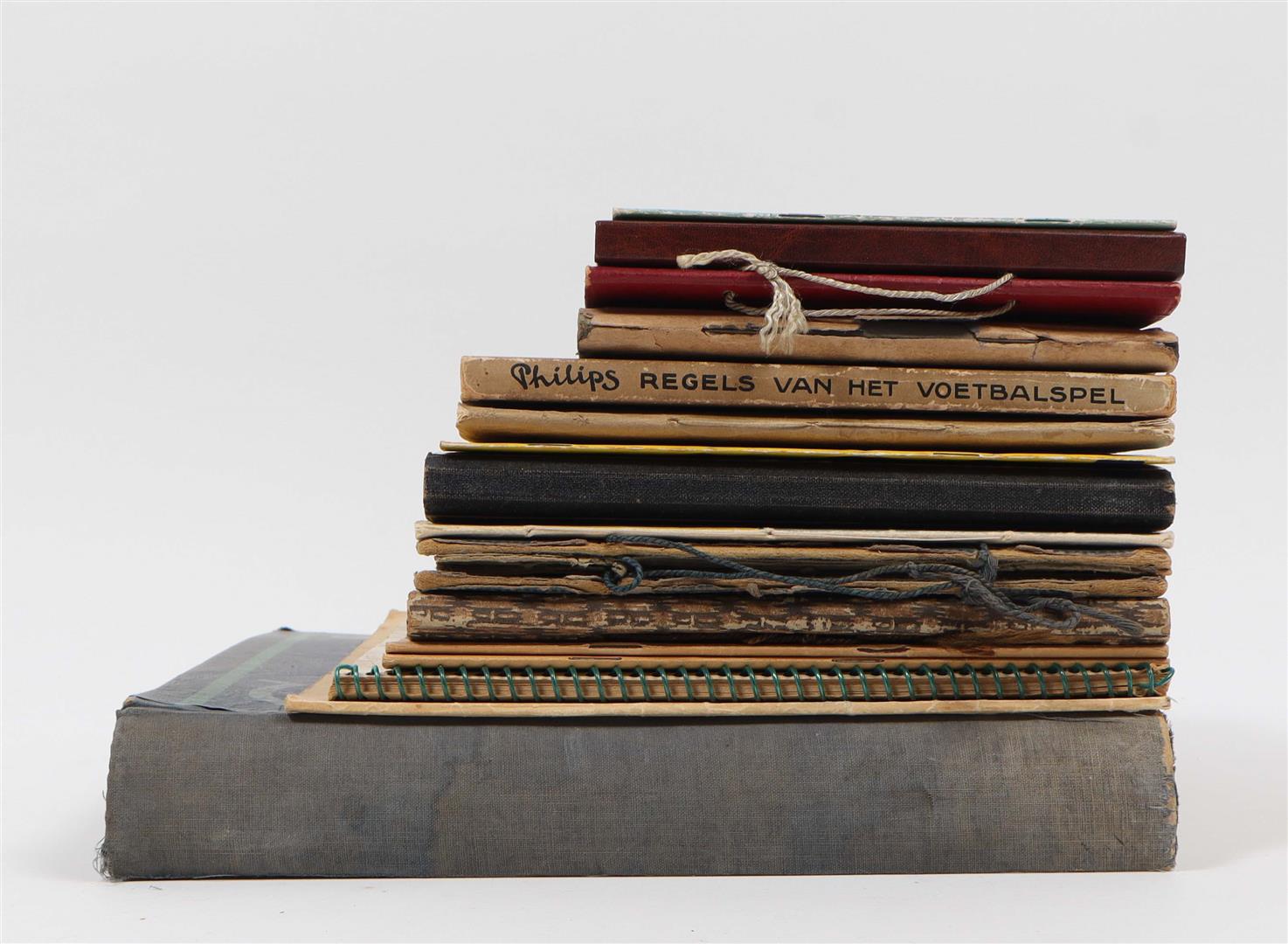 Spelfoto's. Vittoria Egyptian Cigarette Company, 1932. Folio album, hcl. Complete. Name of first and second owner on pastedown. (2) C.J. Groothoff. De Regels van het Voetbalspel voor Spelers & Kijkers. Philips Cigarettes, Maastricht, 1924. Complete. (3) Miss Blanche Album 4e serie. 200 Vooraanstaande Voetballers Competitie 1931-32 K.N.V.B. Complete -and 13 others incl. two albums with mounted soccer cards (Monty etc.)