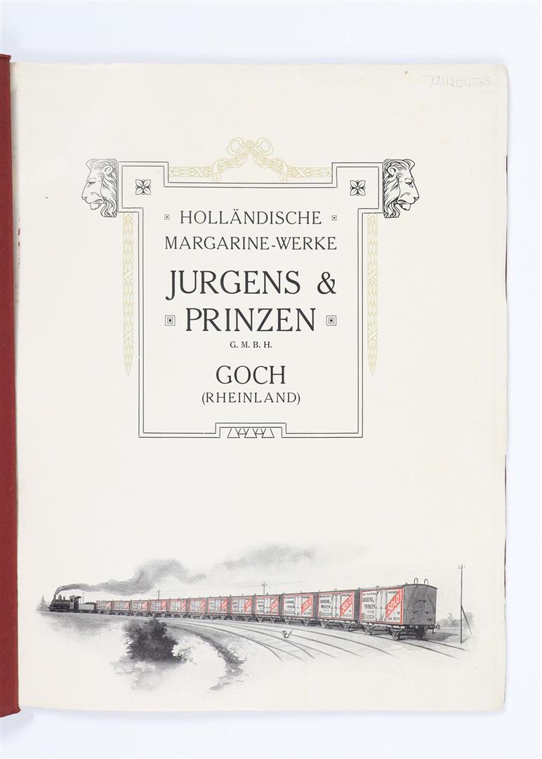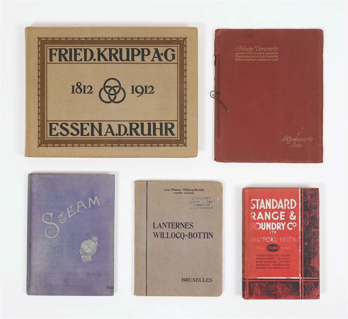 Essen, 1912. 278 p., richly ill. w. many photographs, orig. cloth, oblong. Anniversary publication for steel manufacturer Krupp. With: (2) Holländische Margarine-Werke: Jurgens & Prinzen. Goch, n.d. (ca. 1910). Cord-bound wr. Some lvs. sl. warped. (3) Lanternes Willocq-Bottin. Brussels, 1905. Album no. 11. Trade catalogue for various lanterns. -and 5 others.