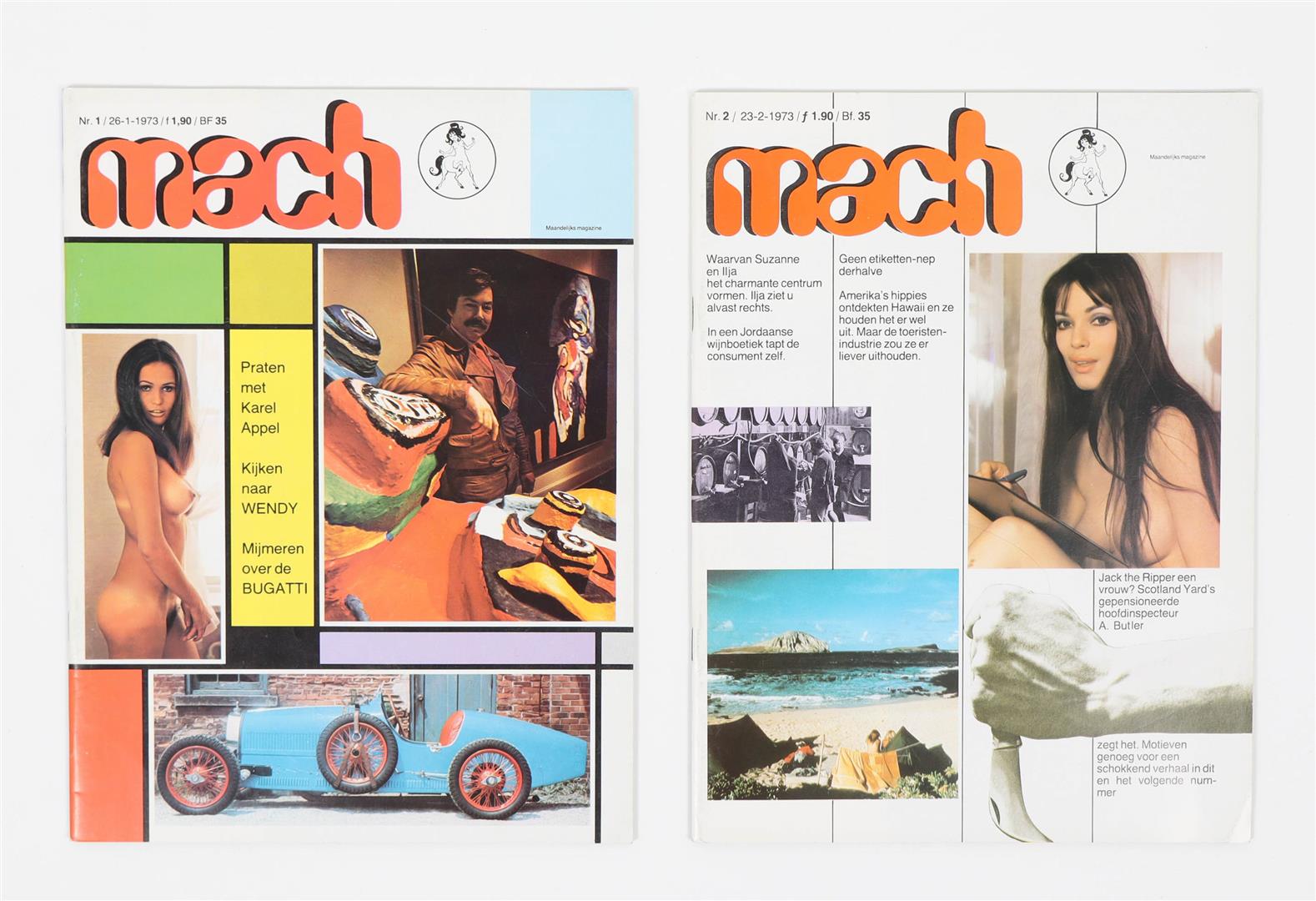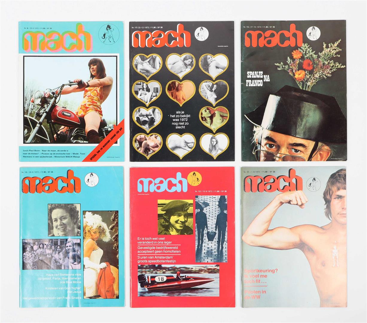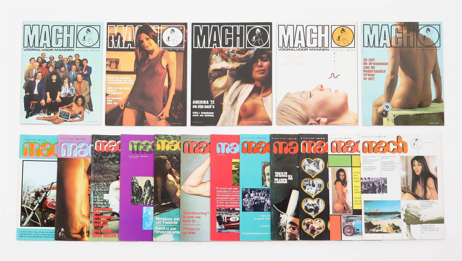 Ed. At van den Ouden. Year 1 (1972), no. 1-13, 15 and 17, and year 2 (1973), no. 1 and 2 (apparently the final number). Richly illustrated w. (partly erotic) photographs and cartoons, orig. stapled wr., 4to. Lacks no. 14 (Nederland ruimt zijn seksboel op) and 16 (unknown title) from year 1. Rare almost complete run.