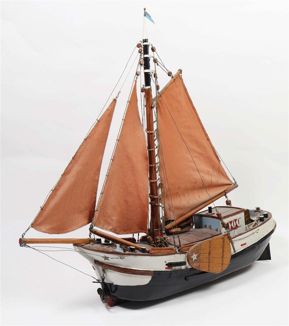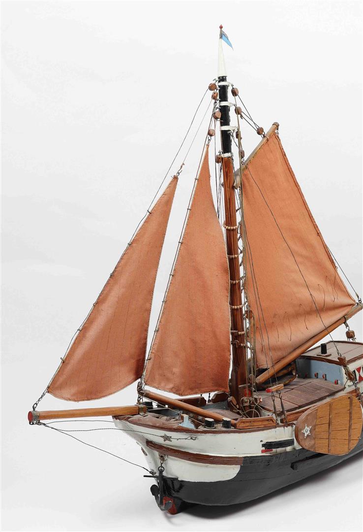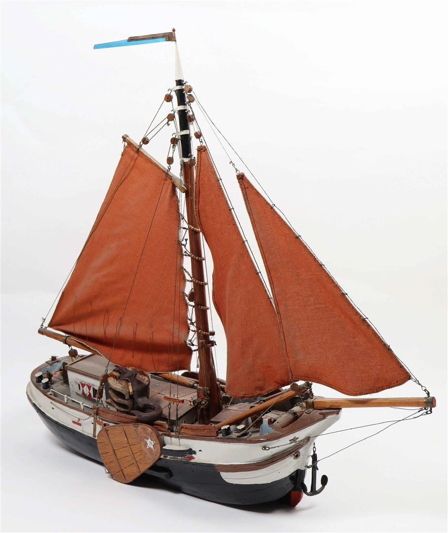 Hand-made and hand-painted, early-mid 20th century. 94 x 24 x 91 cm. Fine workmanship illustrating characteristic features of Dutch shipbuiling of the time.