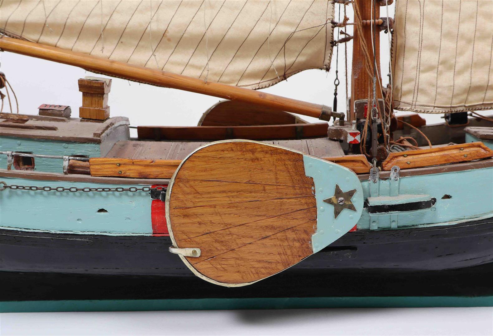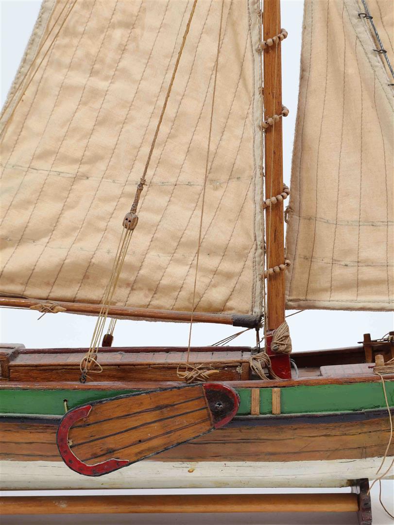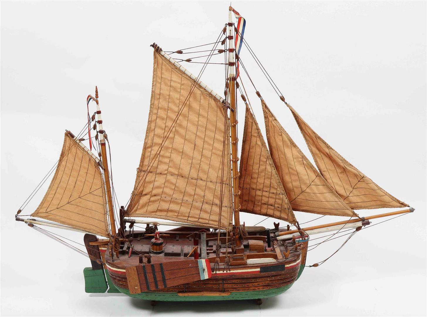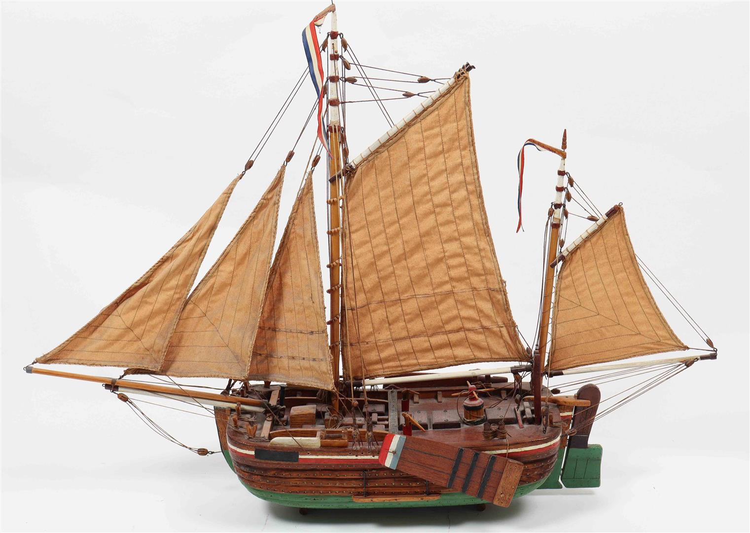 Hand-made and hand-painted, early-mid 20th century. Sizes: (1) 80 x 21 x 81 cm. (2) 59 x 10 x 58 cm. (3) 78 x 21 x 60 cm. Detailed workmanship, showing traditional Dutch shipbuilding of the period.