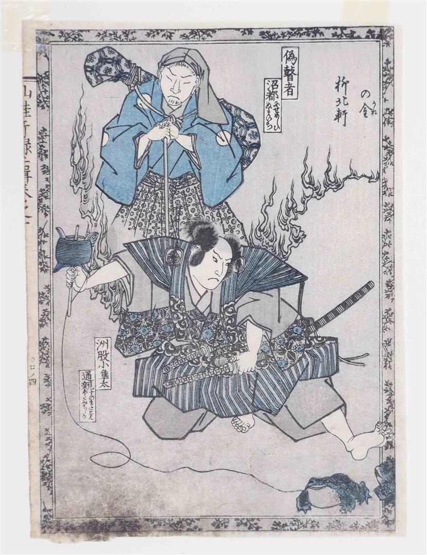 [Japan] Lot of eighteen var. 19th-cent. Japanese (col.) woodcuts,