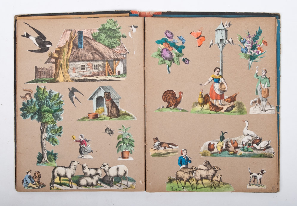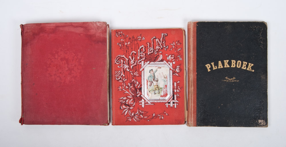 Three scrap albums, 19th century. 52 p + 30 p.(partially loose-leaf) + 49 p. (album damaged, covers water damage).