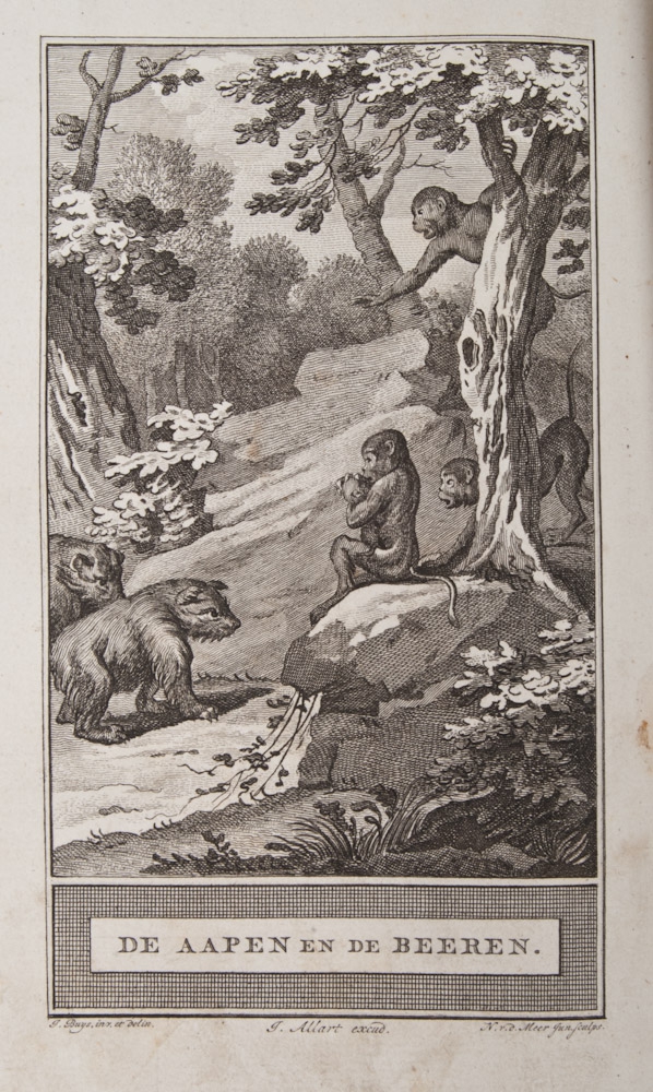 12mo., VIII,348,(24) pp., incl. 16 copperengravings. Added: C.F. Gellerts Fabelen en vertelsels, 3rd part, Amsterdam, Pieter Meijer, 1774 with 33 copperengravings in 8vo. by Buys, Allart and N. v.d. Meer Jun. (2 in total)