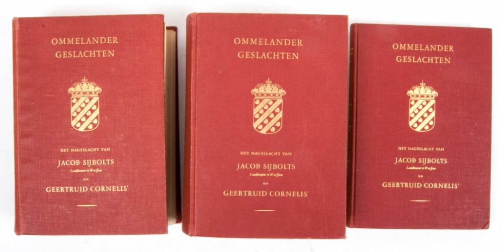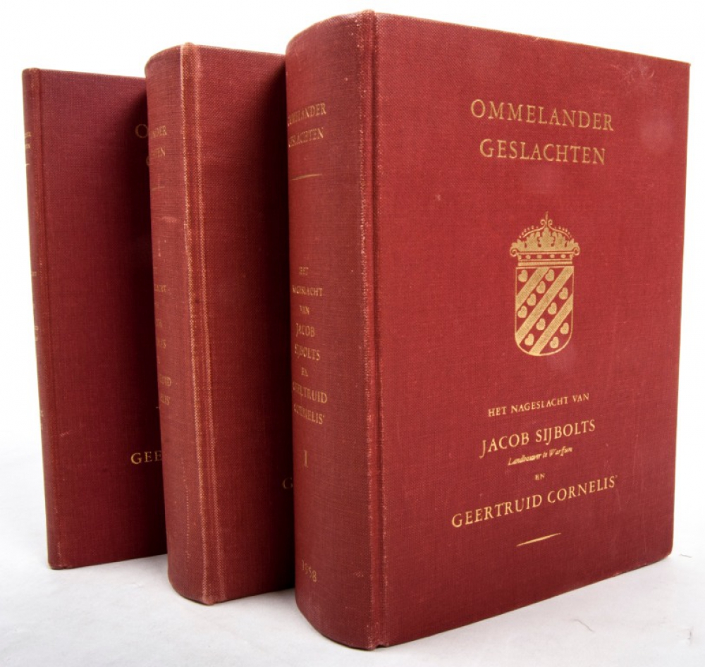 Complete set, 2 parts and an index. Introduction: "(...) Nog meer dan in den eersten druk is verband vastgelegd kunnen worden tusschen talrijke oude eigenerfde boerenfamilies, doch ook van vele andere hierin voorkomende afstammelingen (...) Ook is meer aangegeven van de opbrengsten der boerderijen en lange lijsten van verkoopingen werden opgenomen." Good condition