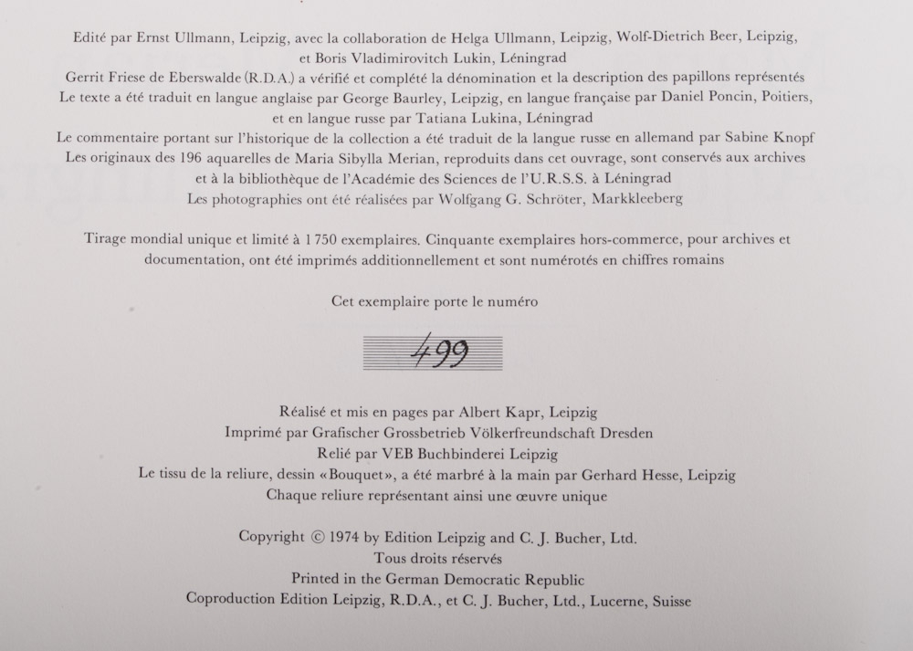 Les Aquarelles de Leningrad. Paris/La Bibliotheque des Arts, 1974. With 50 prints and 319 pp. Monumental case with 2 volumes (print part and commentary) Nr. 419 of1750 numbered copies. In half-vellum with marbled sides in sliding case.