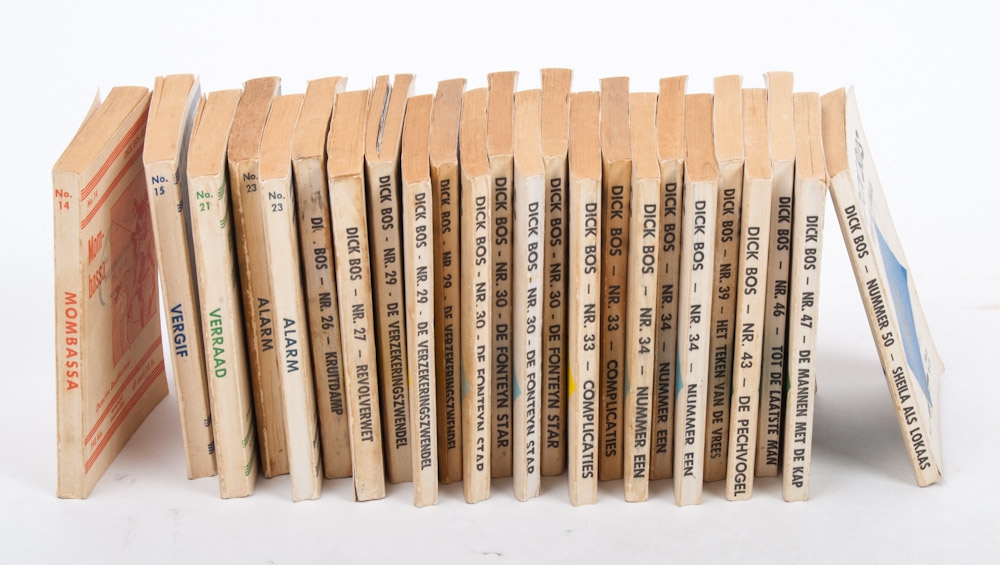 Nooitgedacht nrs. 14, 15, 21 and 23 (2x) 1960-62. + Maz-Beeldbibliotheek 26, 27, 29 (3x), 30 (4x), 33 (2x), 34 (3x), 39, 43 46, 47 and 50. All in reasonably good to good condition.