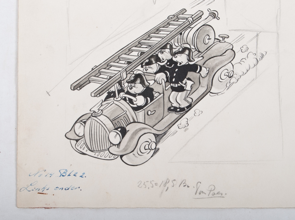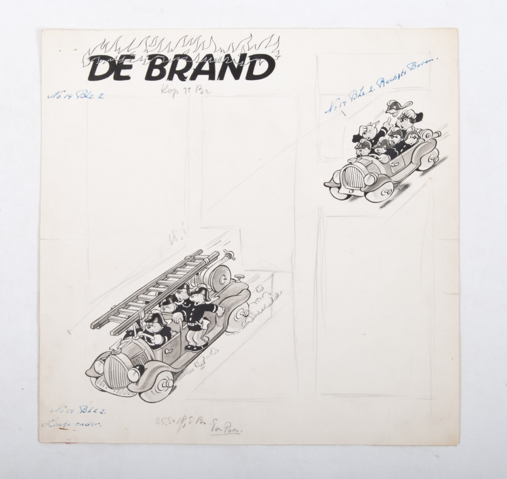 Original drawing in India ink: "De Brand". Published in Tom Poes weekly magazine no. 14, 1948. 30 x 30 cm.