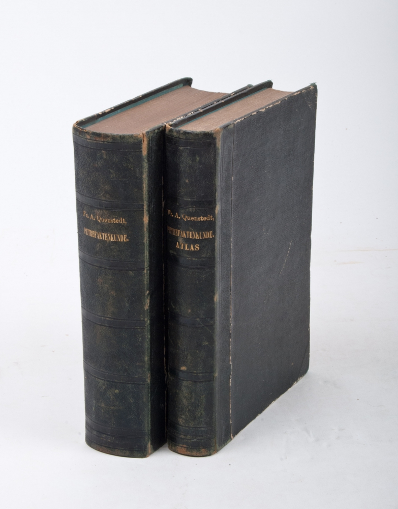 A classical handbook for palaeontology; this 2nd edition enriched with 24 extra prints. Quenstedt was a professor in Tuebingen and specialezed in minerology and geology; he discovered many dinosaur species, such as the Ichtyosaur, Archaeopteryx, mastodonts, trylobites etc. and announced a theory similar to Darwin's almost simultaneously, but never published it. (2 in total)