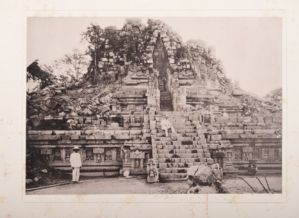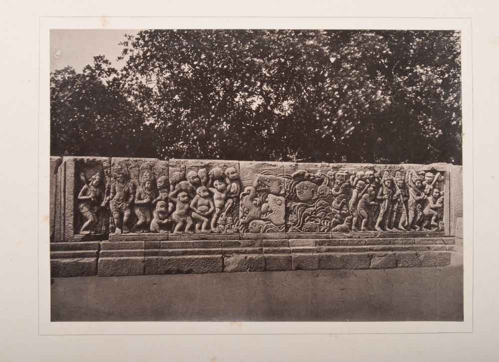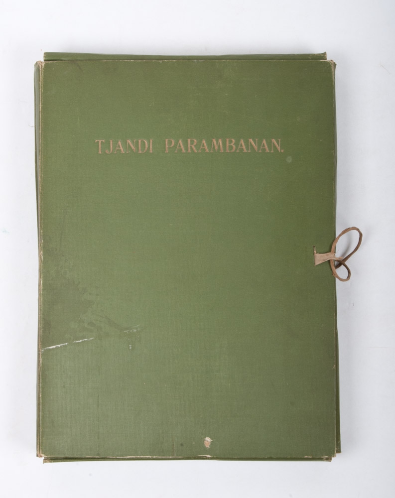 na de ontgraving. Door J. Groneman. Met lichtdrukken van Cephas, hoffotograaf te Jogjakarta. Den Haag, M. Nijhoff, 1893. Text part: (4),30 p. and 2 loose folding prints, original cover, folio. Print part: 58 (of 64) original photographs on cardboard carriers, oblong folio. Text part and print part in original cloth portfolio.
