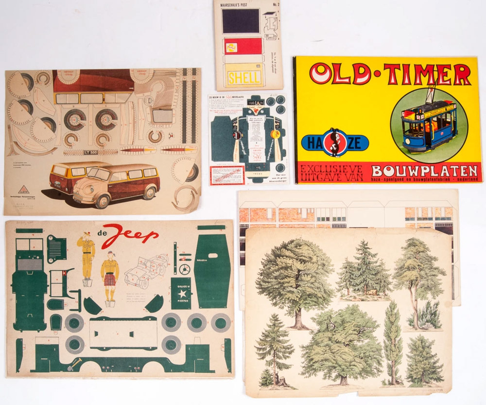 Lot of 17 cut-outs ca. 1935-1980. With e.g. Mobilgas tanktruck, ca. 1950 + Lloyd LT 500 6-seat car, ca. 1958. + The Jeep, ca. 1946 - and 14 others.