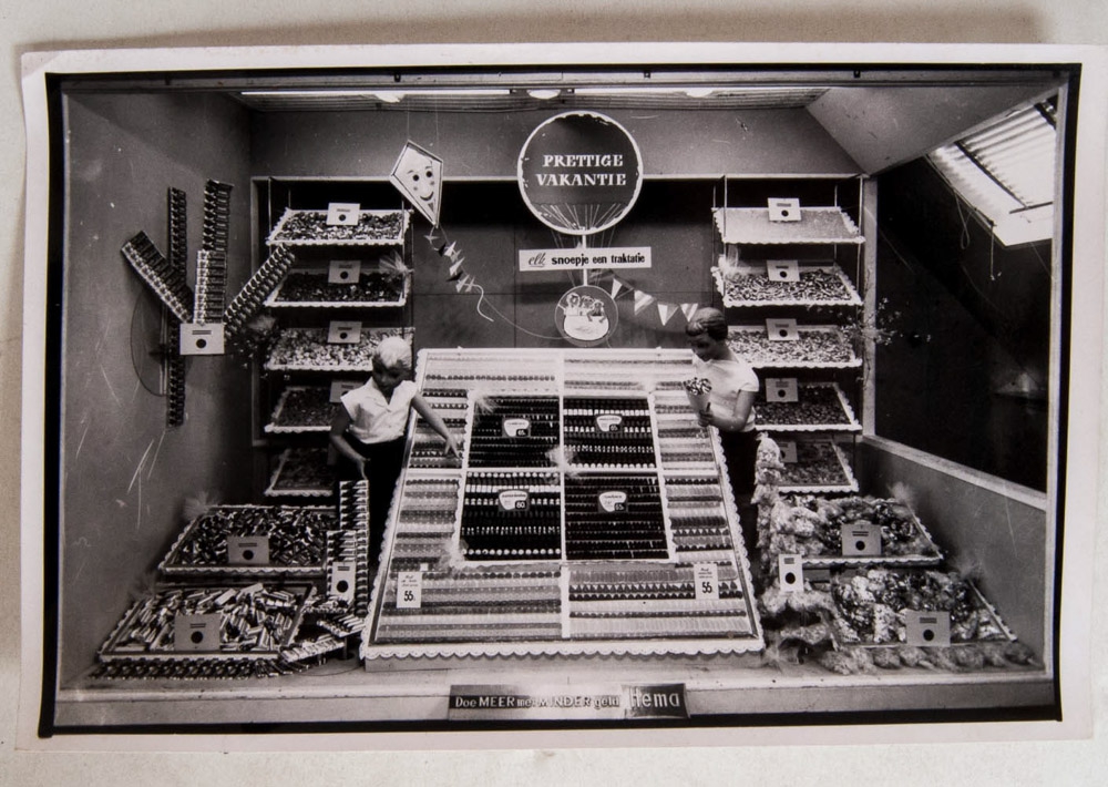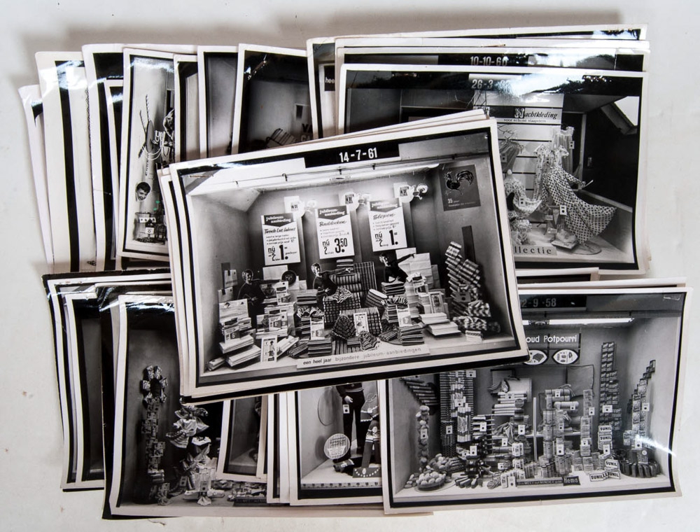 Photographs of shopwindow displays Hema in Rotterdam ca. 1958 -1962. With various topics such as House Potpourri, and Christmas and St. Nicholas shopwindow displays. Most ca. 12 x 17 cm.
