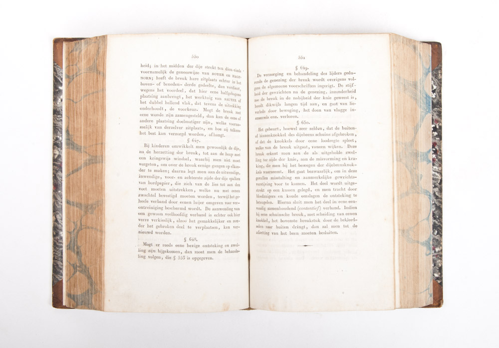 van Max. Jos. Chelius, naar de derde uitgave vertaald en vermeerderd door G.J. Pool (complete, 4 parts in 2 volumes), Amsterdam, C.G. Sulpke, 1830 and 1831-32. Added: 3 other medical works, such as Leerboek van de geschiedenis der geneeskunde, Dr. H. Haeser (and transl. by) Dr. A.H. Israels, Utrecht en Amsterdam, C. van der Post Jr. en C.G. van der Post, 1859.