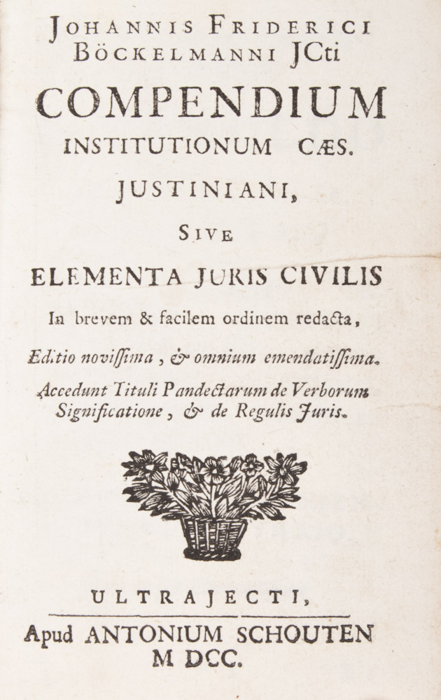 [Unknown Utrecht edition] Johannis Friderici Böckelmanni JCti Compendium institutionum