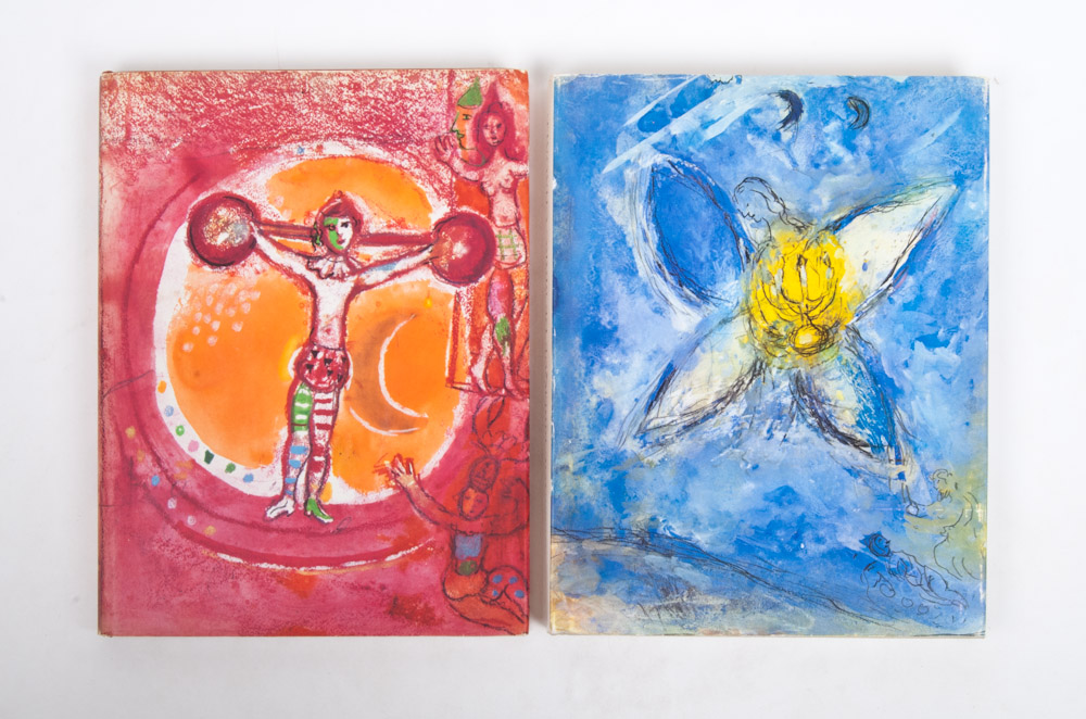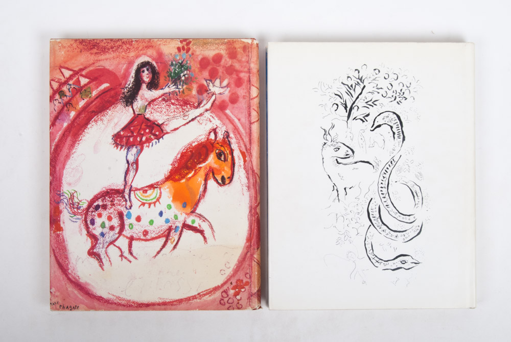 Together with: Marc Chagall (1887-1985) Le Message Biblique. Préface de Jean Chatelain, Fernand Mourlot, Paris, 1972. 199 p. [in cooperation with] Charles Marq and Charles Sorlier. Complete and good copy with original lithograph by Chagall as frontispiece. The coloured cover represents Jacob's dream.