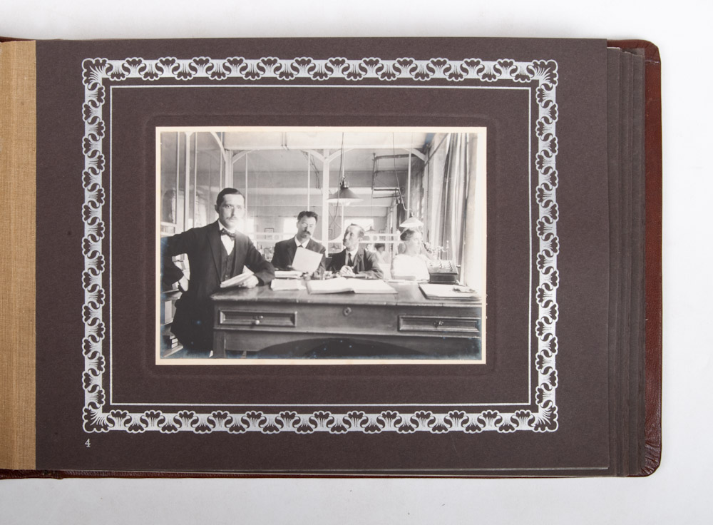 Official anniversary album with tipped-in photographs covered by tissue paper, that was also given to friends and employees of the printer. Beautiful copy.