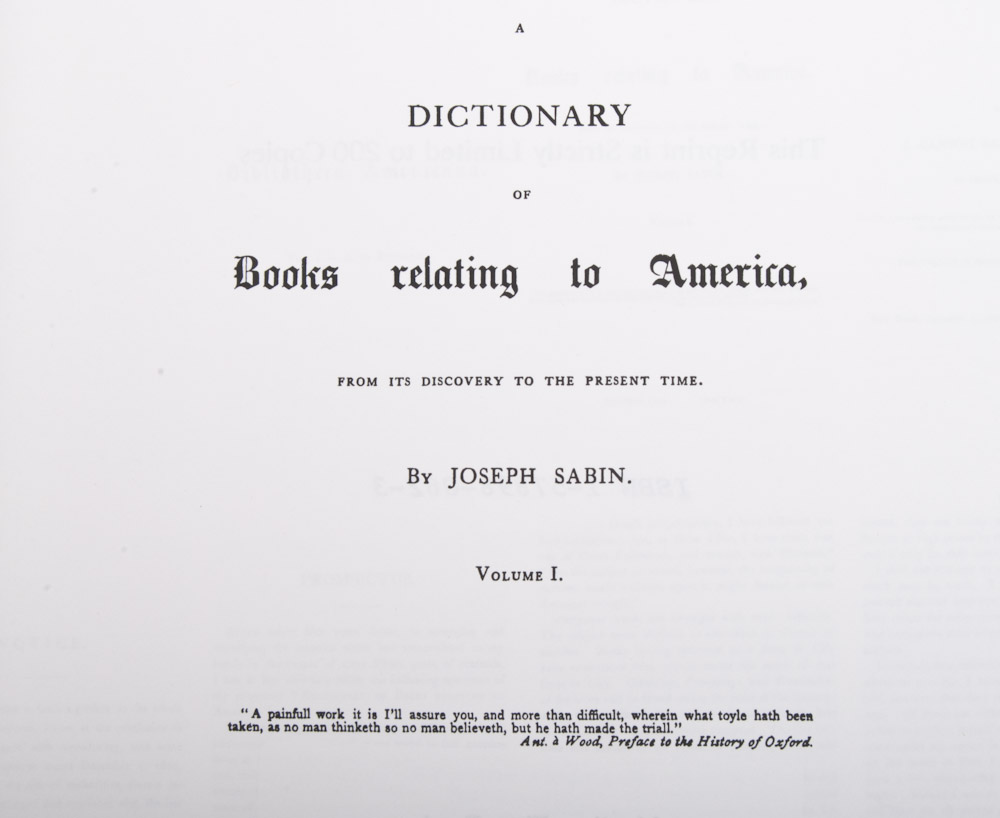 From its discovery to the present time, Joseph Sabin, Volume I. (and) II. Martino Fine Books, Mansfield Centre, C.T. [1998].