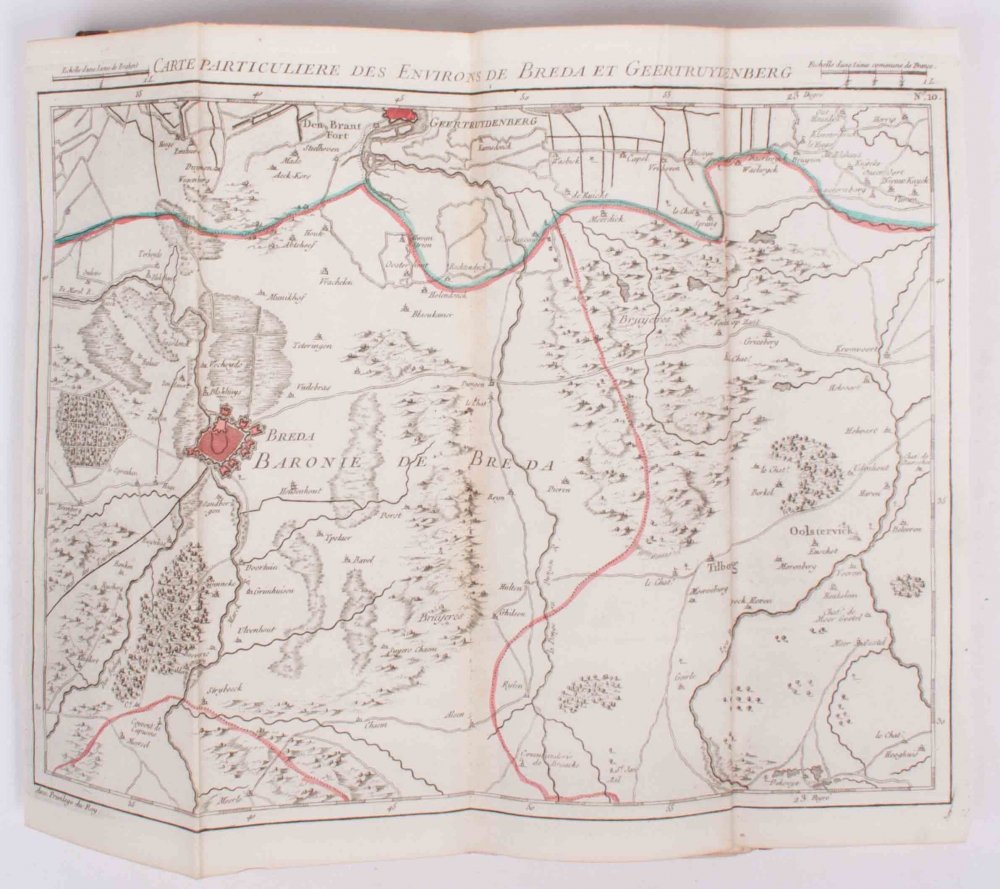 Dressée sur les Meilleurs Cartes Levées dans dans les Pays (...) par (...) G. Dheulland, n.d. (1747), engraved overview map flanked by title and index and 24 submaps, all folding and with contemporary border colouring, bound with contemporary speckled calf leather with ribbed gilt back, 25.5 x 10.5 cm.