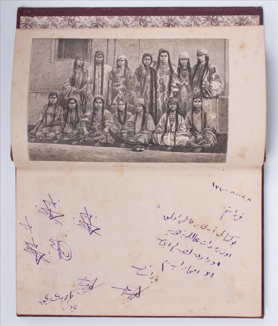 Author unkn., 1277 (Arabic calendar, 1898 European calendar). 232 p. Bound in red half leather. Illustrated with 24 steel engravings of etnic population.