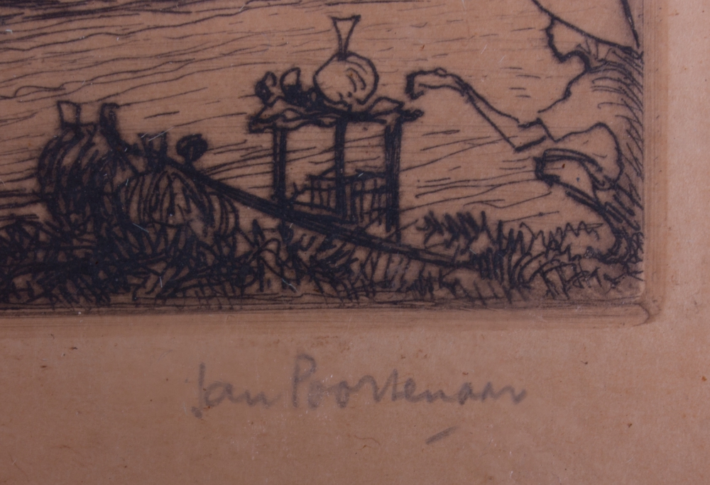 Dry needle etching. Bijlag, behoorende bij het Gedenknummer, uitgegeven naar aanleiding van het vijftigjarig bestaan de "De Indische Mercuur", 1928. Signature bottom right. 22 x 17 cm. Framed under glass.