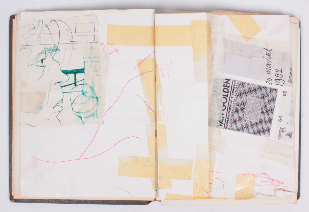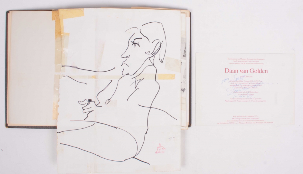 With separately included some extras, including an invitation for a Boymans exhibit in 1982 by Daan van Golden, with signed dedication by the artist, and a collage of various drawings and cuttings with the name Piet van den Heuvel and dated "30 March 1982" in felt pen.