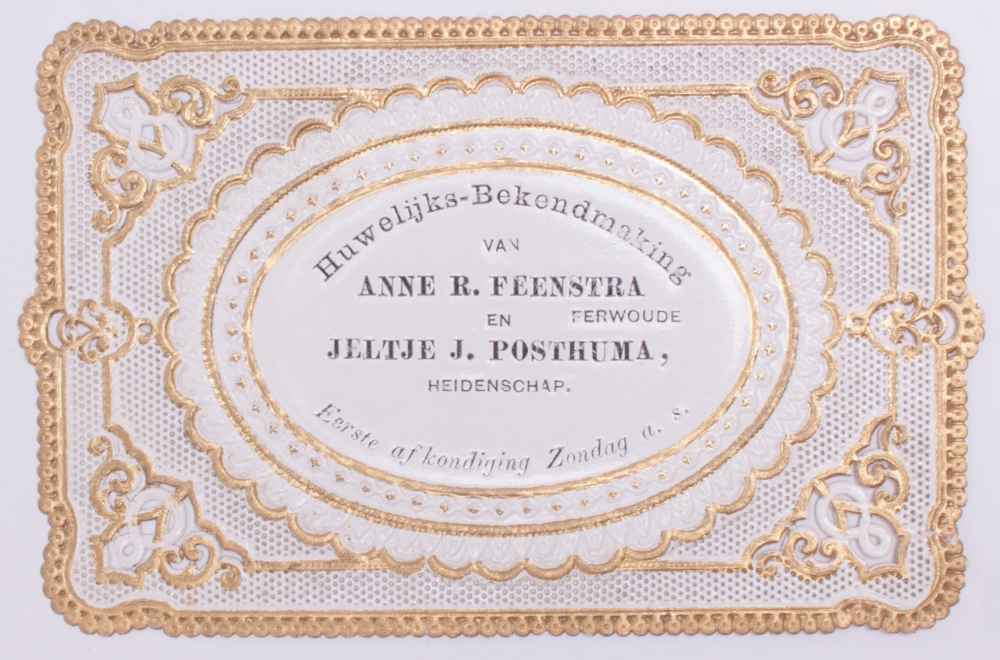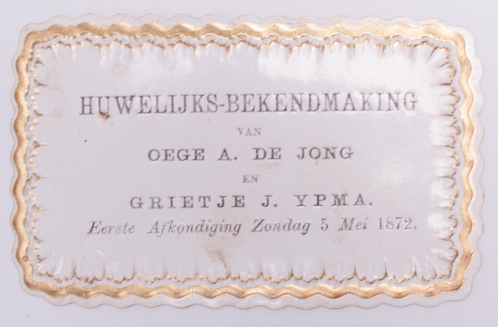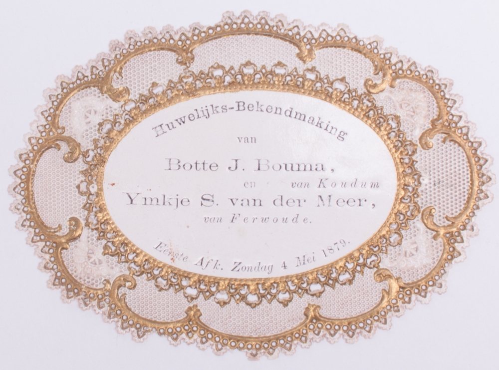 19th century. Lot of 60 engagement cards by Frisian couples from the second half of the 19th century. From Frisian villages such as Poppingawier, Gauw, Loënga, Terhorne etc.