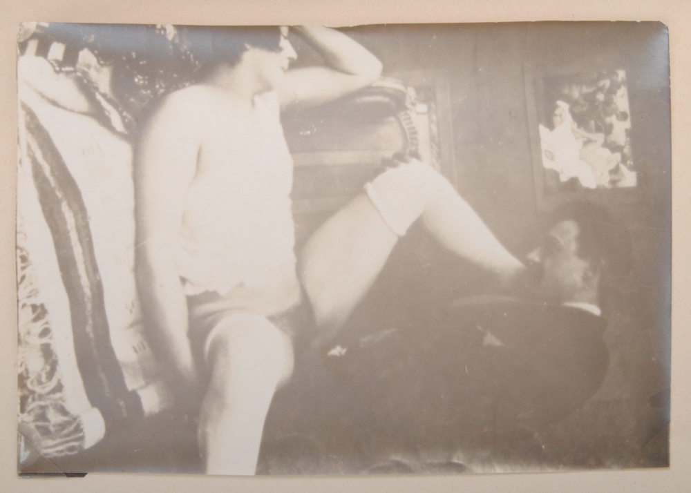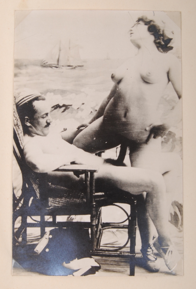Photos of copulating couples, ordered by position; from missionary to cunnilingus, ending in golden showers. All in plain binder, photos inserted in photocorners, various sizes.