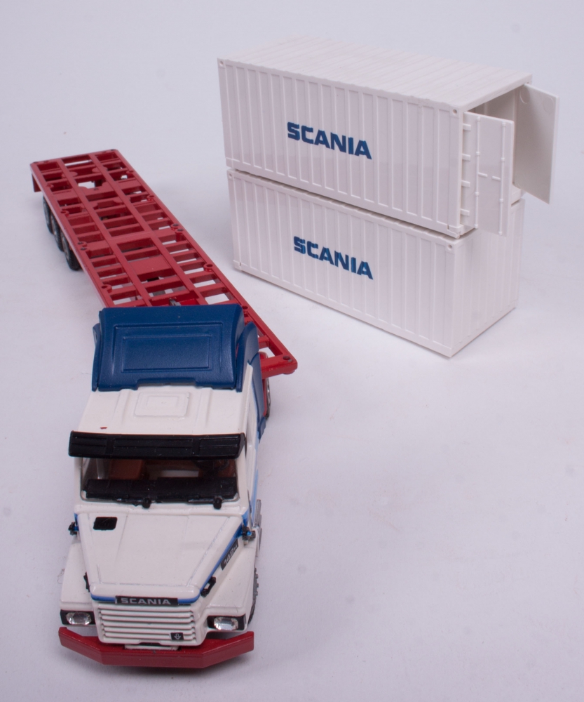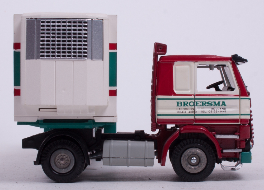 Lot with 6 trucks, all complete in original box. 1. Broersma, white. 2. Newexco, brown. 3. Verwer, blue. 4. De Opel-Dealer, white. 5. Scania, white. 6. De Courant, blue/yellow. Series from 1974-1984 period.