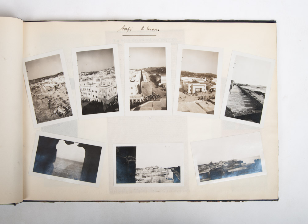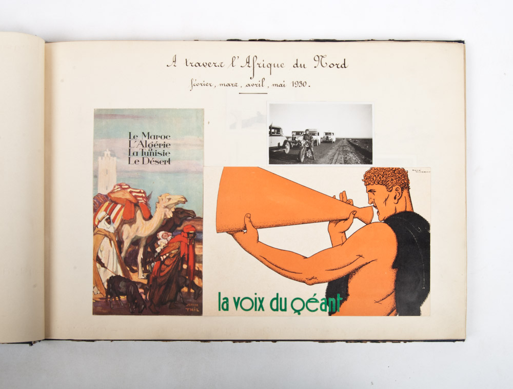 "A Travers l' Afrique du Nord. février, mars, avril, mai, 1930. Oblong folio album (31 x 45 cm), 100 pp. With several hundred photos of a car journey through North Africa, mostly in small size (10.5 x 6.5 and 4 x 6.5 cm).
