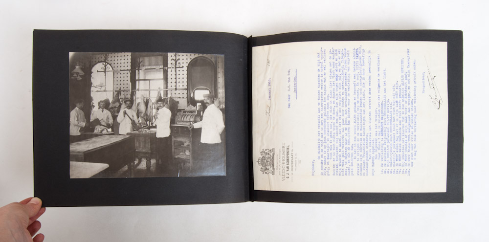 Beautiful and unique photo document in 3 albums of shop interiors in the Netherlands. Some examples "Alkmaarsche Stoom-Koek- en Banketfabriek Excelsior, 1933", "Gebr. Hofsteenge Vleeschhouwerij, Oude-Kijk-in 't Jatstraat 56 Groningen, 1931", "Boekhandel en Handelsdrukkerij N.V. G. Moorman -Nijmegen, 1932".