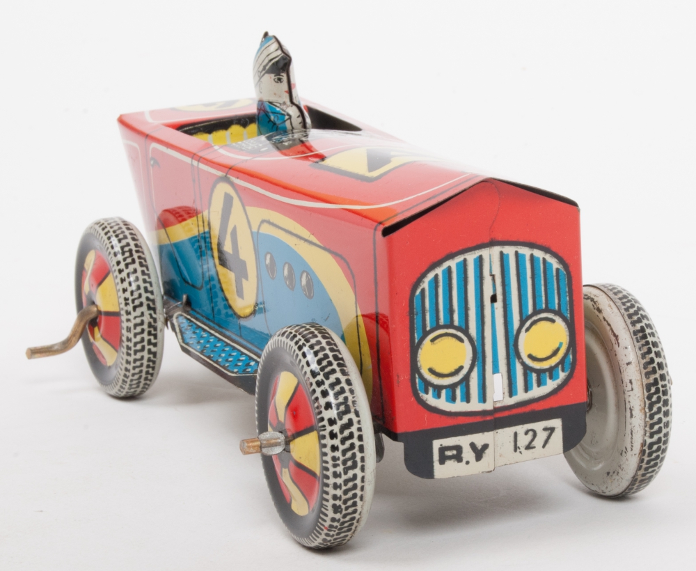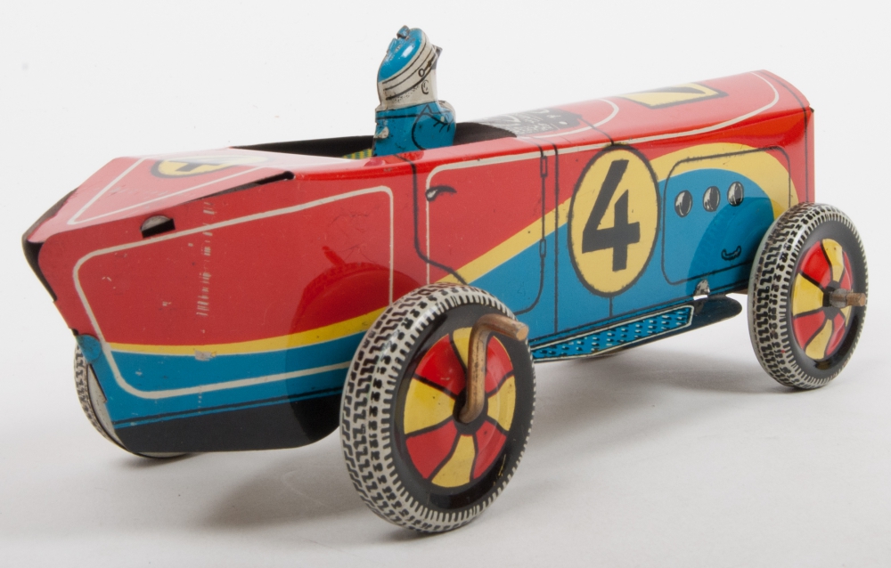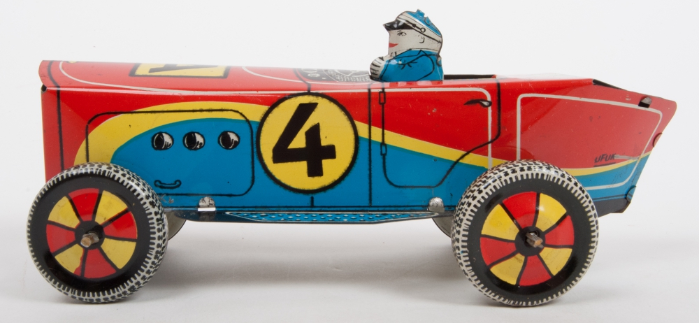 Race car with driver. Ca. 1946. Like new. Length 21 cm.