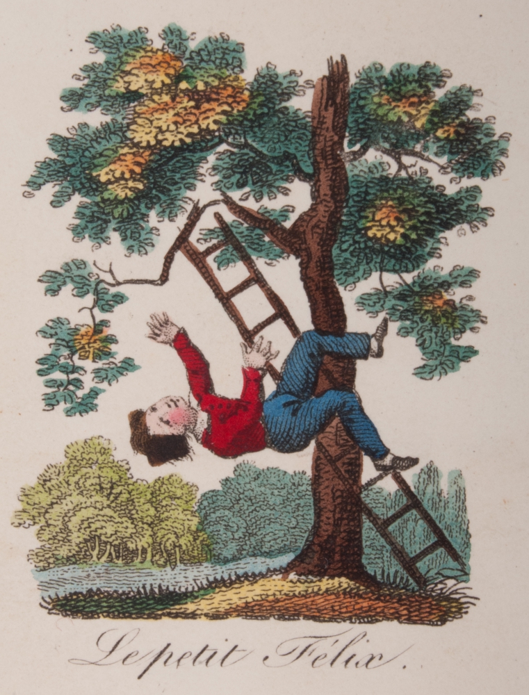 Miniature publications (6.7x4.6cm). Imprim. de Amb. Firmin Didot, rue Jacob, ca. 1830. Series of 4 string-bound booklets, each 24pp. with in each a coloured copper engraving. In slipbox.
